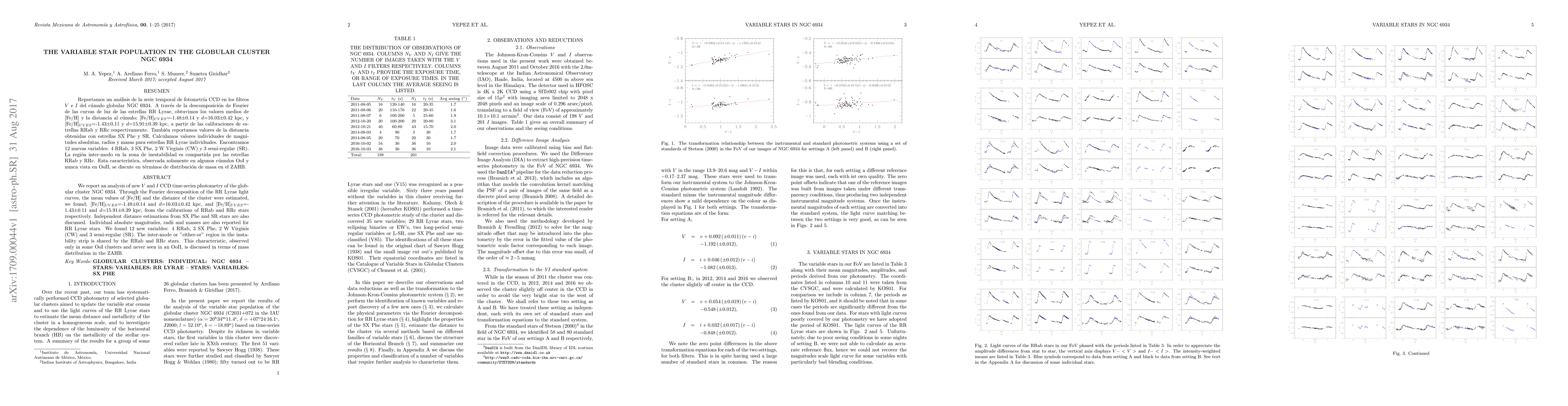 Researchers analyzed photometry data from globular cluster NGC 6934 to estimate its metallicity and distance, finding a range of values for these parameters and discovering new variable stars within the cluster.