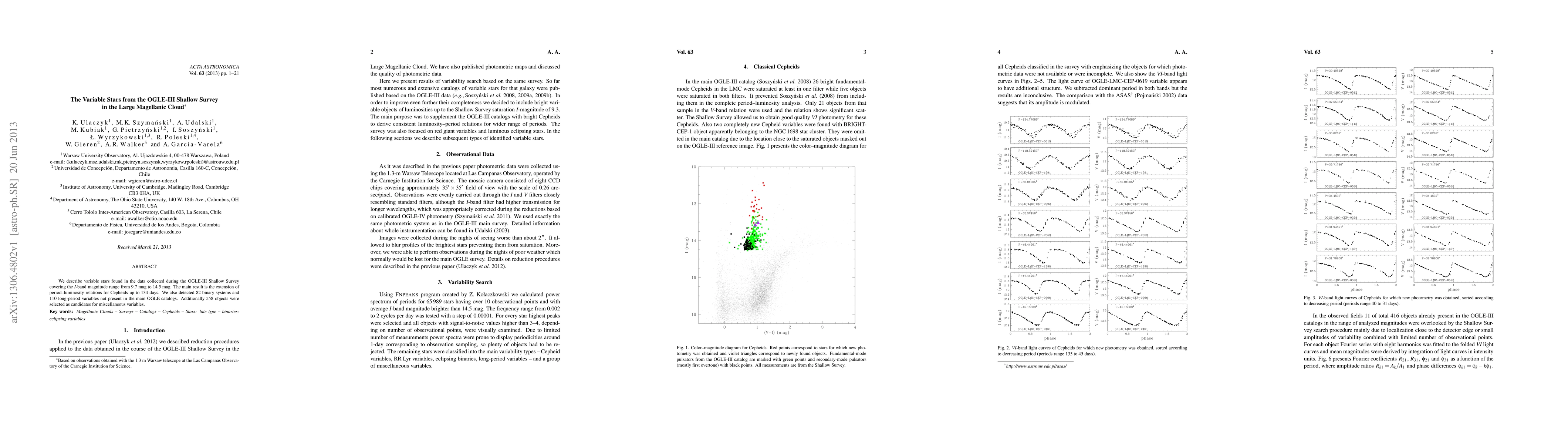 The OGLE-III Shallow Survey identified numerous variable stars in the Large Magellanic Cloud, extending Cepheid period-luminosity relations up to 134 days and discovering 82 binary systems and 110 long-period variables not previously cataloged. Additionally, 558 objects were flagged as candidates for miscellaneous variable stars.