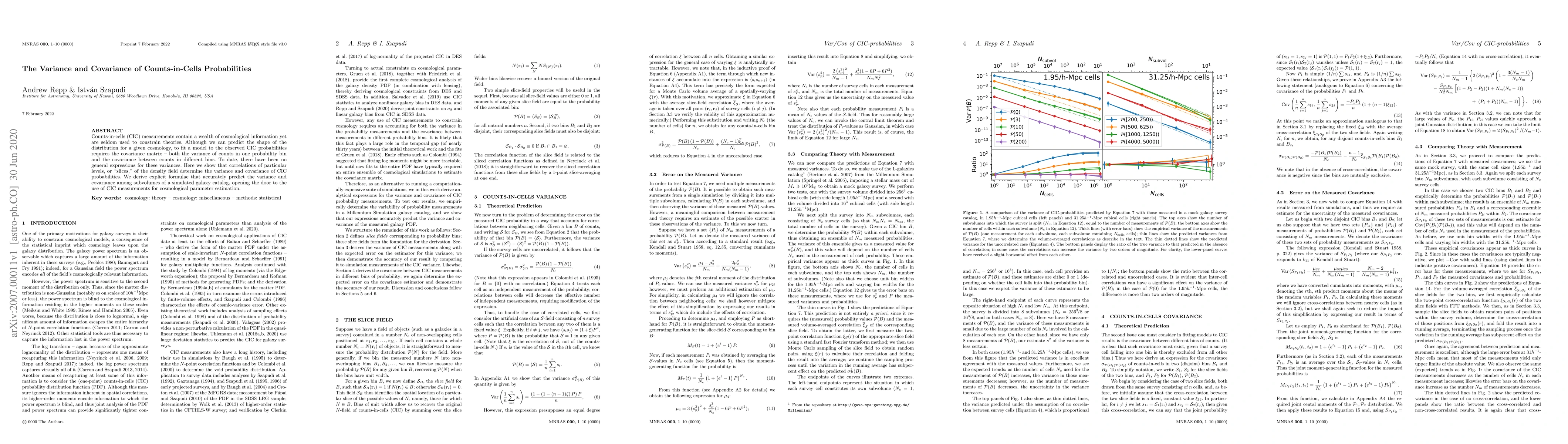 Researchers developed explicit formulae to predict the variance and covariance of Counts-in-Cells probabilities in cosmological simulations, enabling the use of CIC measurements for parameter estimation.