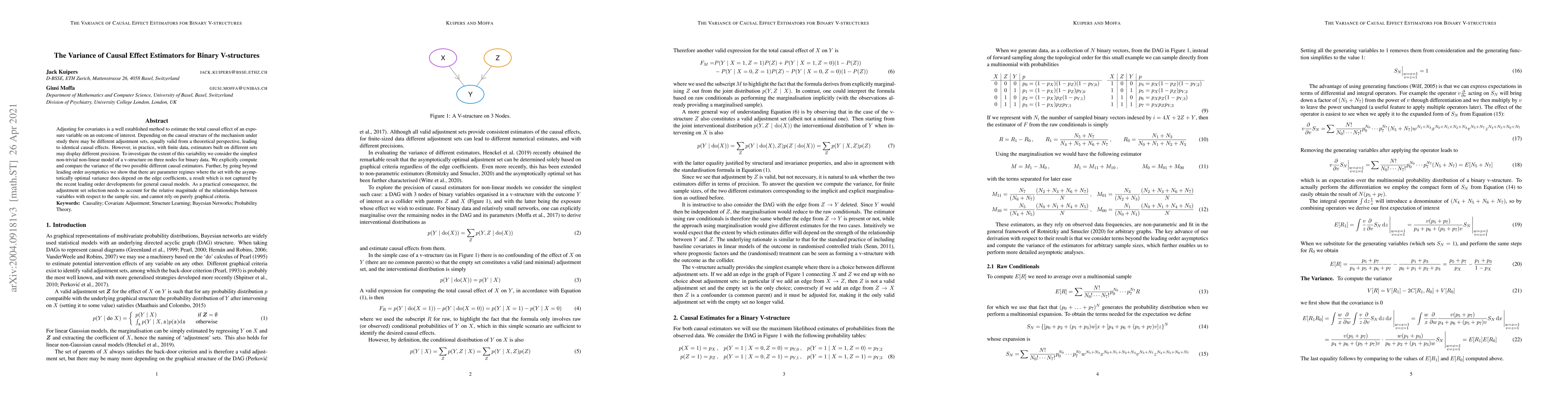Adjusting for covariates is a well established method to estimate the total causal effect of an exposure variable on an outcome of interest. Depending on the causal structure of the mechanism under study there may be different adjustment sets, equally valid from a theoretical perspective, leading to identical causal effects. However, in practice, with finite data, estimators built on different sets may display different precision. To investigate the extent of this variability we consider the simplest non-trivial non-linear model of a v-structure on three nodes for binary data. We explicitly compute and compare the variance of the two possible different causal estimators. Further, by going beyond leading order asymptotics we show that there are parameter regimes where the set with the asymptotically optimal variance does depend on the edge coefficients, a result which is not captured by the recent leading order developments for general causal models. As a practical consequence, the adjustment set selection needs to account for the relative magnitude of the relationships between variables with respect to the sample size, and cannot rely on purely graphical criteria.