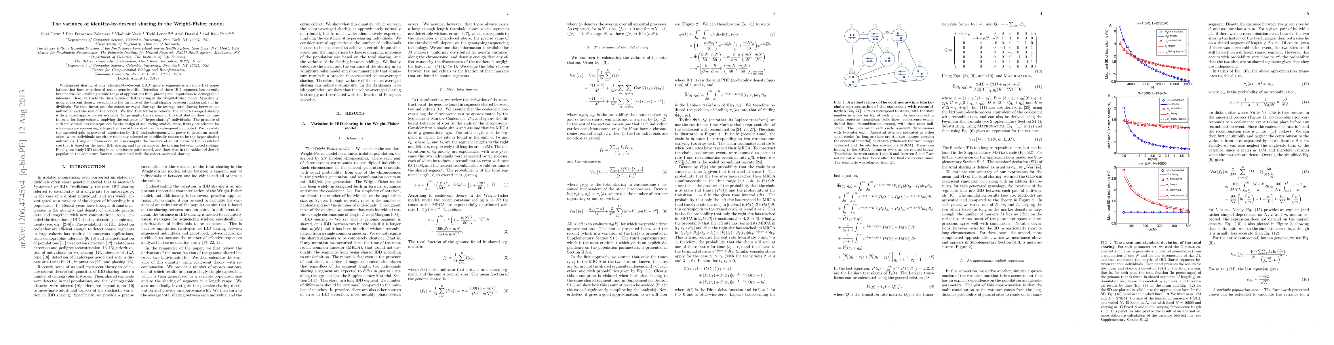 This research calculates the variance of identical-by-descent (IBD) genetic segment sharing in the Wright-Fisher model, revealing a non-vanishing variance for large cohorts, indicating 'hyper-sharing' individuals. These findings impact sequencing study design and imputation power, with additional exploration into admixture models and population size estimation.