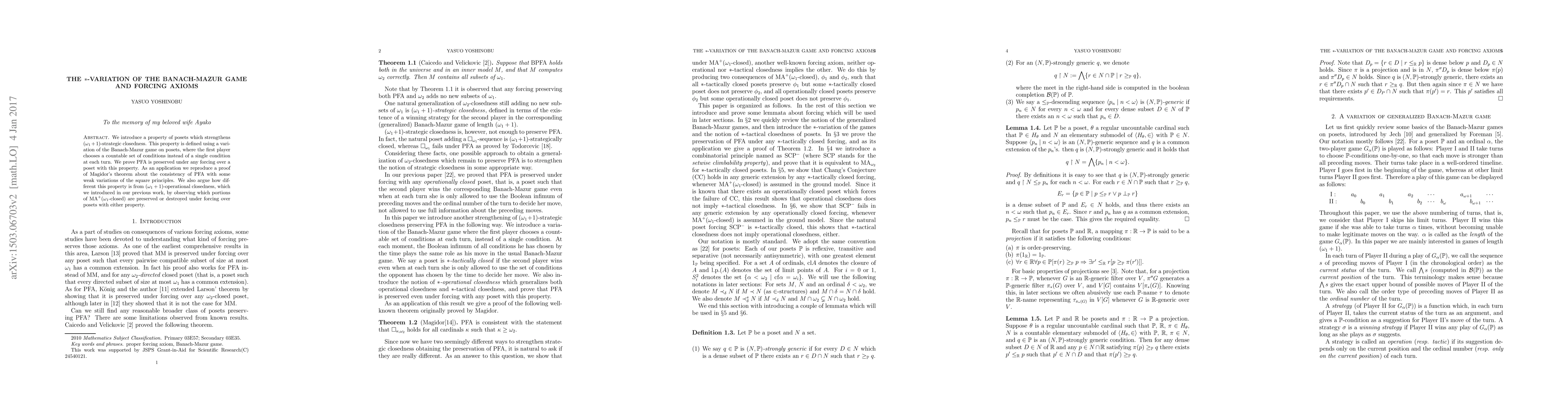 We introduce a property of posets which strengthens (\omega_1+1)-strategic closedness. This property is defined using a variation of the Banach-Mazur game on posets, where the first player chooses a countable set of conditions instead of a single condition at each turn. We prove PFA is preserved under any forcing over a poset with this property. As an application we reproduce a proof of Magidor's theorem about the consistency of PFA with some weak variations of the square principles. We also argue how different this property is from (\omega_1+1)-operational closedness, which we introduced in our previous work, by observing which portions of MA^+(\omega_1-closed) are preserved or destroyed under forcing over posets with either property.