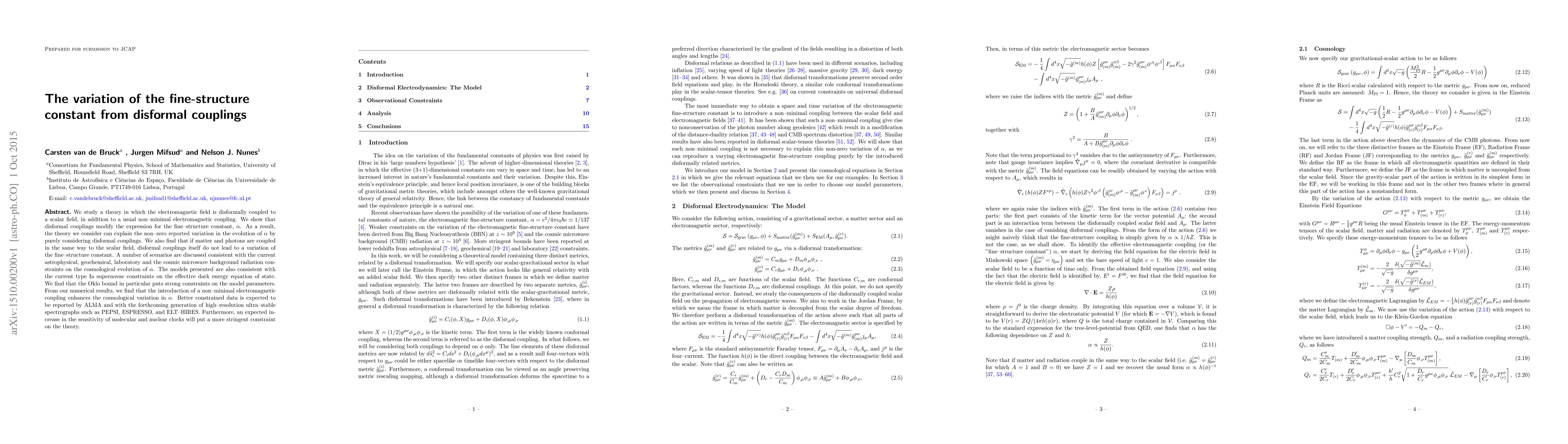 This paper explores a theory where disformal couplings between the electromagnetic field and a scalar field modify the fine-structure constant, potentially explaining its reported variation over time. The study finds that while disformal couplings alone do not lead to such variation, the inclusion of non-minimal electromagnetic coupling does, consistent with various observational constraints.