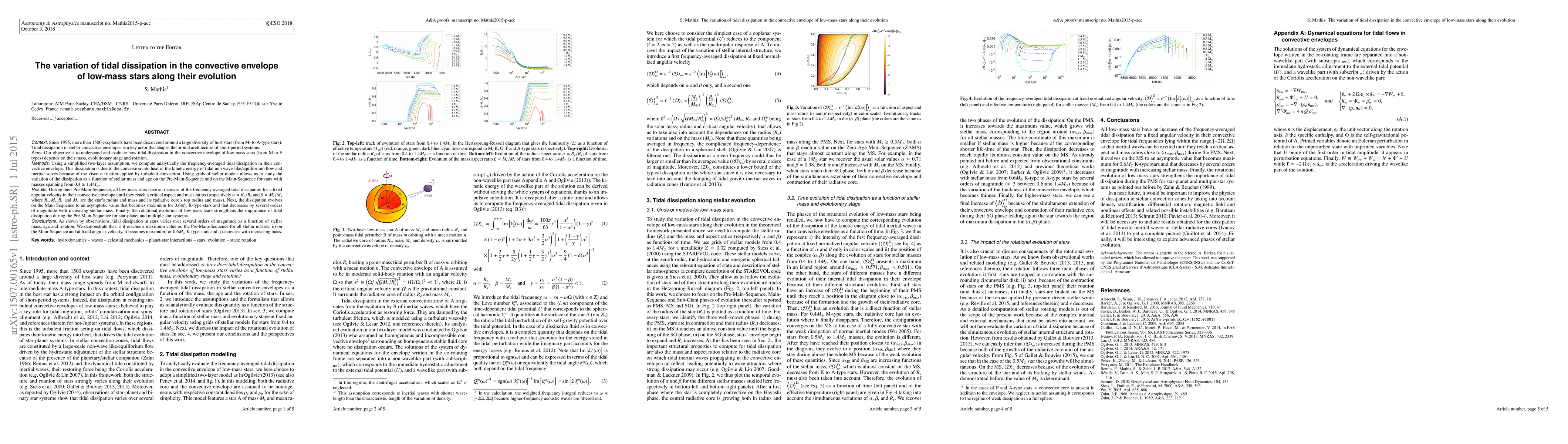 This paper investigates how tidal dissipation in the convective envelopes of low-mass stars varies with mass, evolutionary stage, and rotation. Analytical models show that tidal dissipation increases during the Pre-Main-Sequence until reaching a critical mass and aspect ratio, then decreases significantly on the Main Sequence, with the highest dissipation found in $0.6M_{\odot}$ K-type stars.