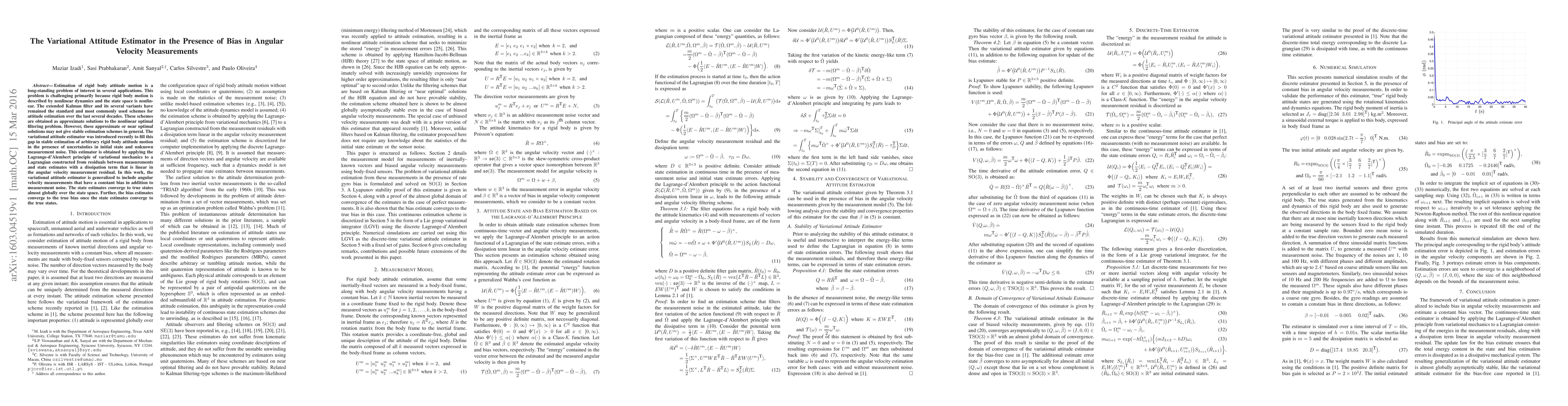 This paper introduces a generalized variational attitude estimator that addresses stability issues in rigid body attitude motion estimation, particularly in the presence of constant bias in angular velocity measurements. The estimator converges to true states almost globally and bias estimates converge once state estimates are accurate.