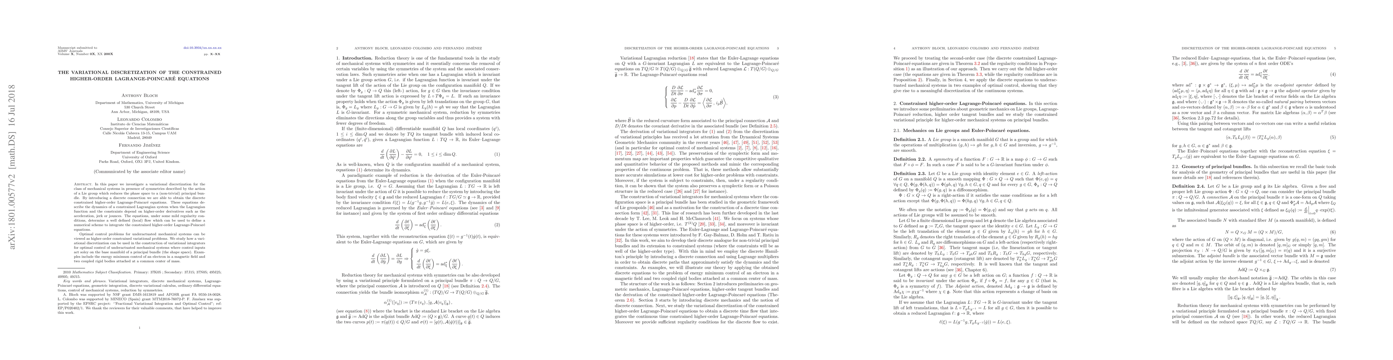 This paper develops a variational discretization method for constrained higher-order Lagrange-Poincaré equations in mechanical systems with symmetries, leading to discrete constrained higher-order equations. It also explores the application of this method to optimal control problems for underactuated systems, providing a framework for variational integrators.