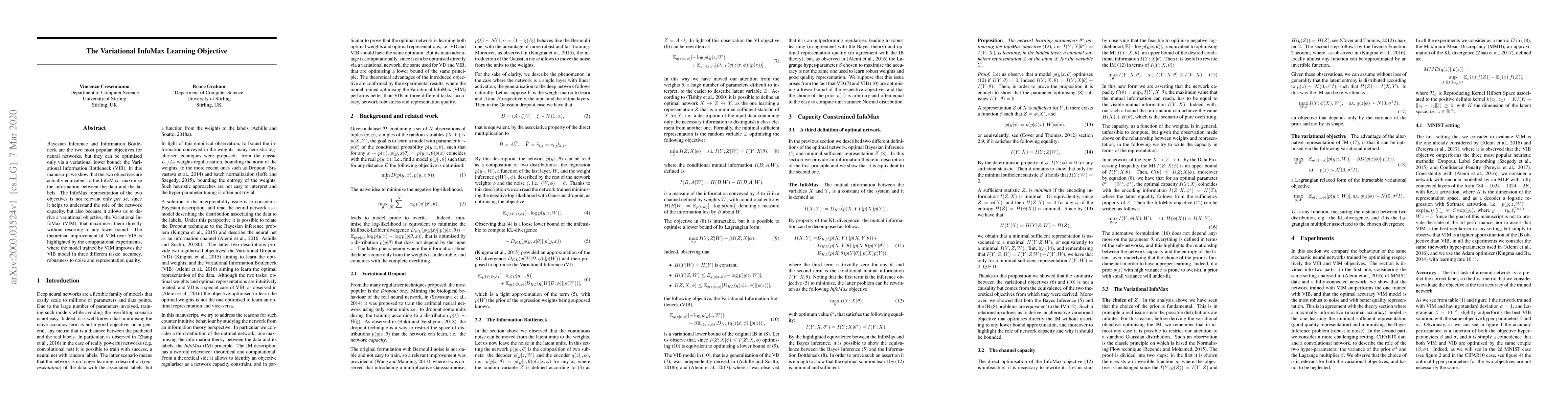 Bayesian Inference and Information Bottleneck are the two most popular objectives for neural networks, but they can be optimised only via a variational lower bound: the Variational Information Bottleneck (VIB). In this manuscript we show that the two objectives are actually equivalent to the InfoMax: maximise the information between the data and the labels. The InfoMax representation of the two objectives is not relevant only per se, since it helps to understand the role of the network capacity, but also because it allows us to derive a variational objective, the Variational InfoMax (VIM), that maximises them directly without resorting to any lower bound. The theoretical improvement of VIM over VIB is highlighted by the computational experiments, where the model trained by VIM improves the VIB model in three different tasks: accuracy, robustness to noise and representation quality.