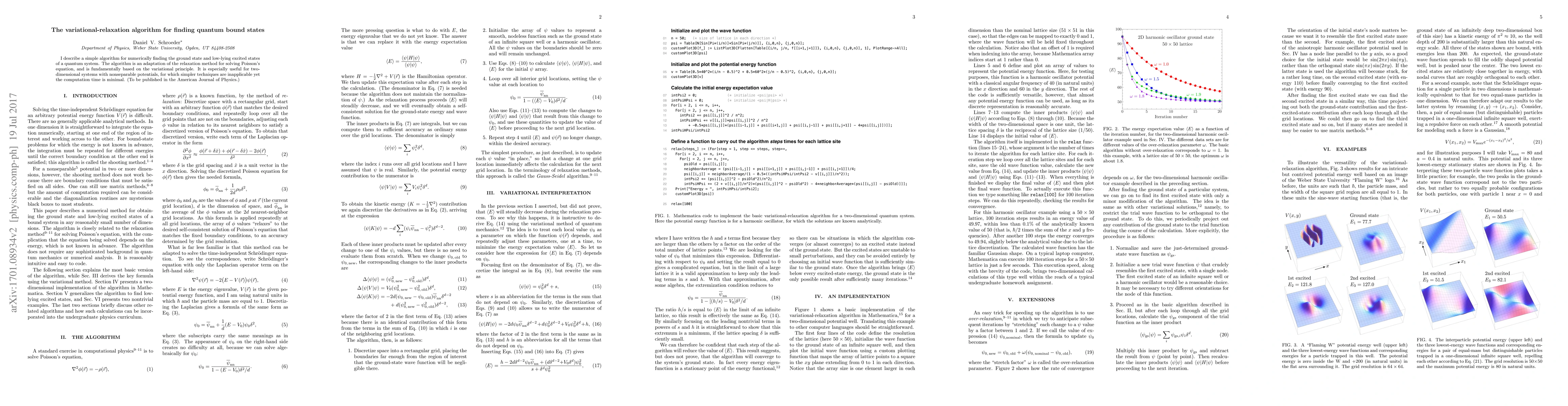 I describe a simple algorithm for numerically finding the ground state and low-lying excited states of a quantum system. The algorithm is an adaptation of the relaxation method for solving Poisson's equation, and is fundamentally based on the variational principle. It is especially useful for two-dimensional systems with nonseparable potentials, for which simpler techniques are inapplicable yet the computation time is minimal.