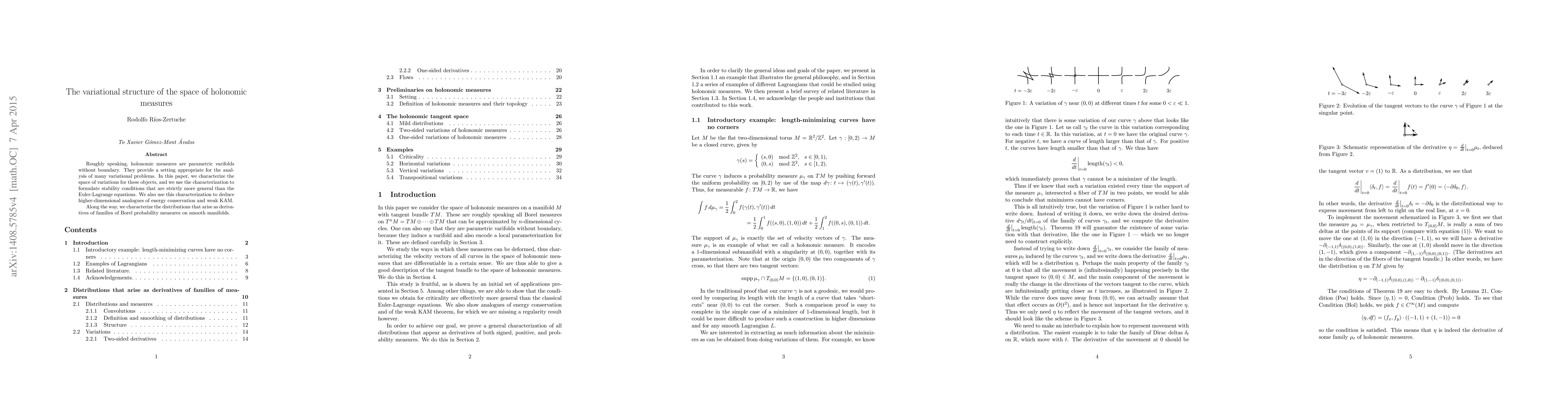 Roughly speaking, holonomic measures are parametric varifolds without boundary. They provide a setting appropriate for the analysis of many variational problems. In this paper, we characterize the space of variations for these objects, and we use the characterization to formulate stability conditions that are strictly more general than the Euler-Lagrange equations. We also use this characterization to deduce higher-dimensional analogues of energy conservation and weak KAM. Along the way, we characterize the distributions that arise as derivatives of families of Borel probability measures on smooth manifolds.