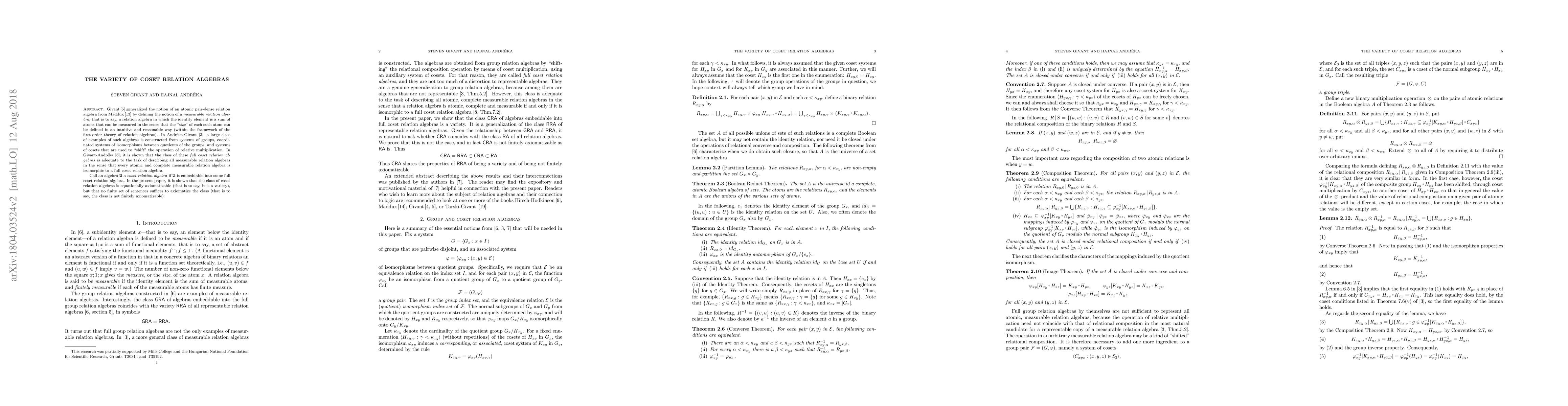The class of coset relation algebras is equationally axiomatizable but not finitely axiomatizable, meaning it can be defined with a set of equations, but no finite number of equations can capture its full definition.