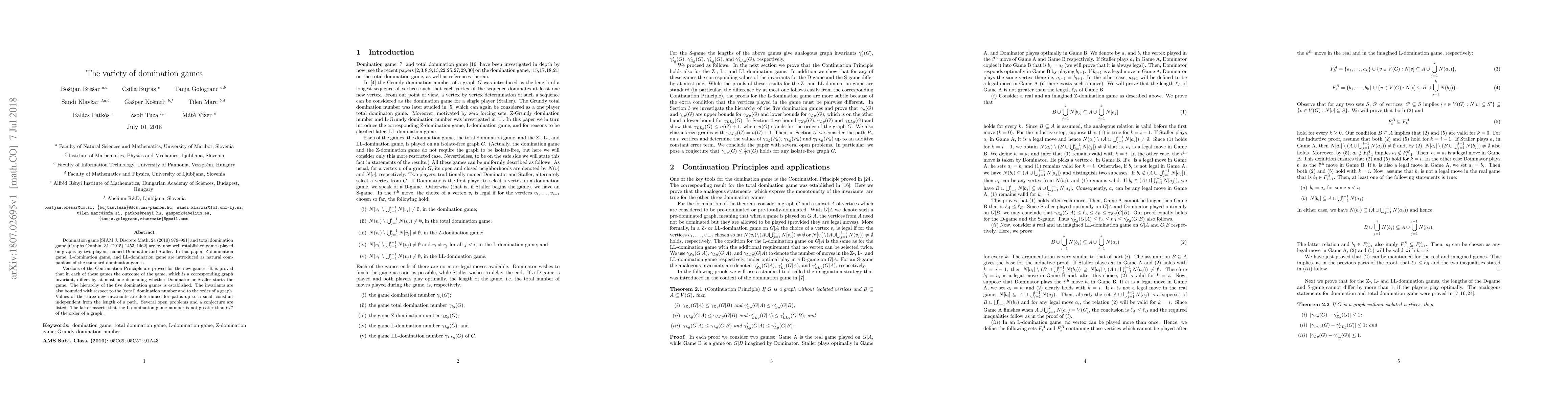This paper introduces three new domination games—Z-domination, L-domination, and LL-domination—expanding on established domination and total domination games. The paper establishes a hierarchy among these games and proves versions of the Continuation Principle for them, showing that the game outcomes differ by at most one depending on who starts.