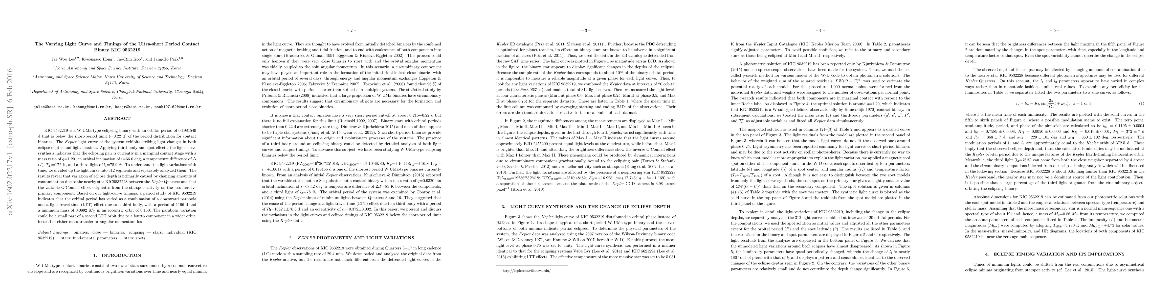 KIC 9532219, an ultra-short period contact binary, exhibits significant light curve variations due to a third body and star spot activity. The orbital period shows a complex variation, potentially influenced by a fourth component in a wider orbit rather than mass transfer or angular momentum loss.