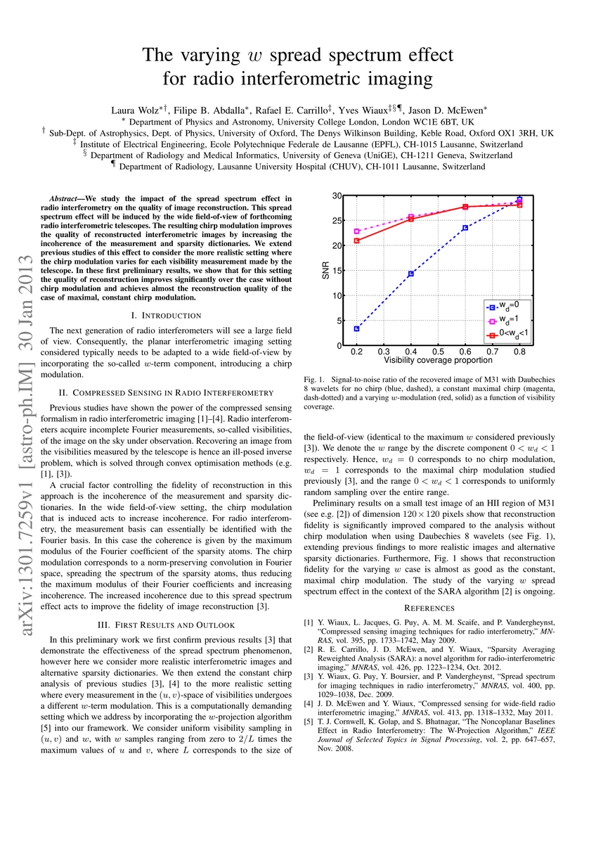This paper investigates the spread spectrum effect in radio interferometry, showing that varying chirp modulation due to wide field-of-view improves image reconstruction quality by enhancing measurement incoherence and dictionary sparsity. Preliminary results indicate significant reconstruction quality improvements compared to non-modulated settings.
