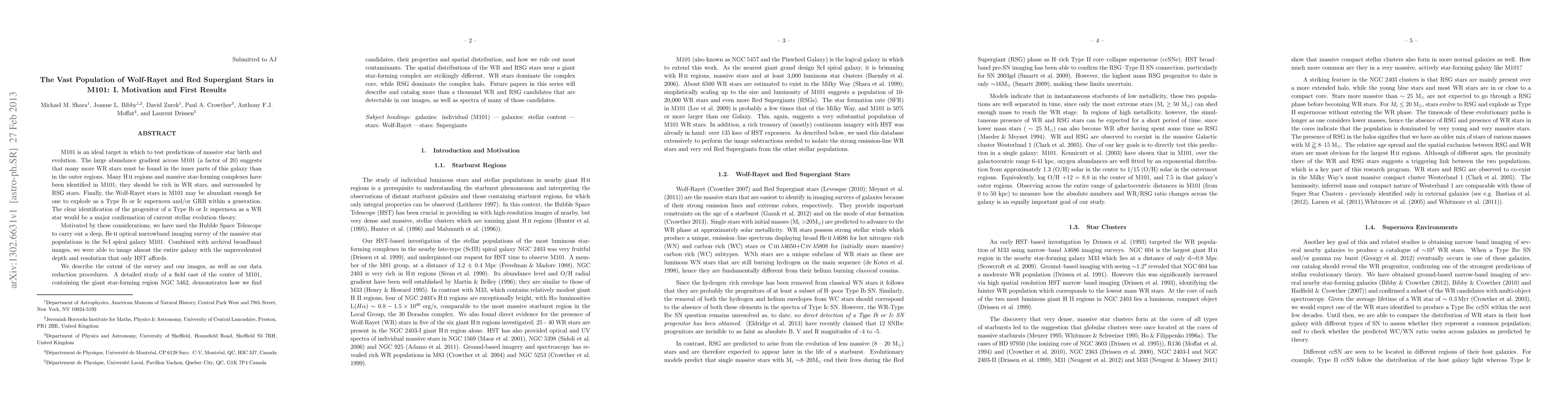 This paper uses the Hubble Space Telescope to survey the massive star populations in M101, identifying a vast number of Wolf-Rayet and red supergiant stars, with WR stars concentrated in star-forming regions and RSGs in their halos. Future work will catalog and analyze over a thousand candidates.