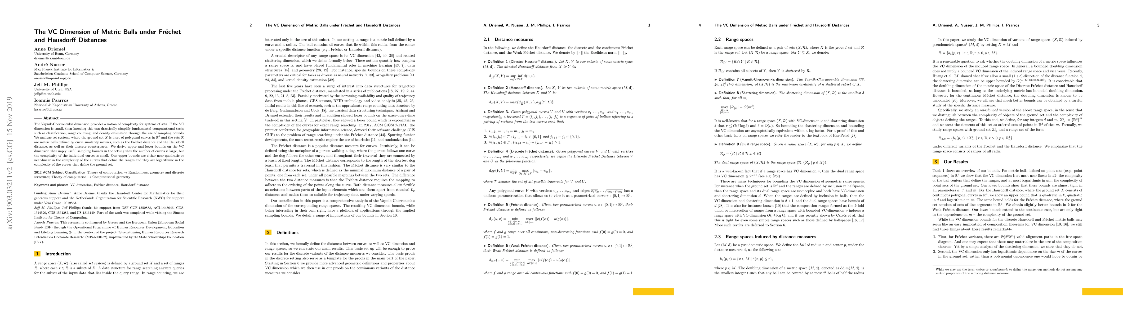 This paper investigates the VC dimension for set systems where the sets are metric balls defined by Fr\'echet and Hausdorff distances on polygonal curves in $\mathbb{R}^d$. It provides upper and lower bounds on the VC dimension, implying useful sampling bounds for large sets of simple curves.