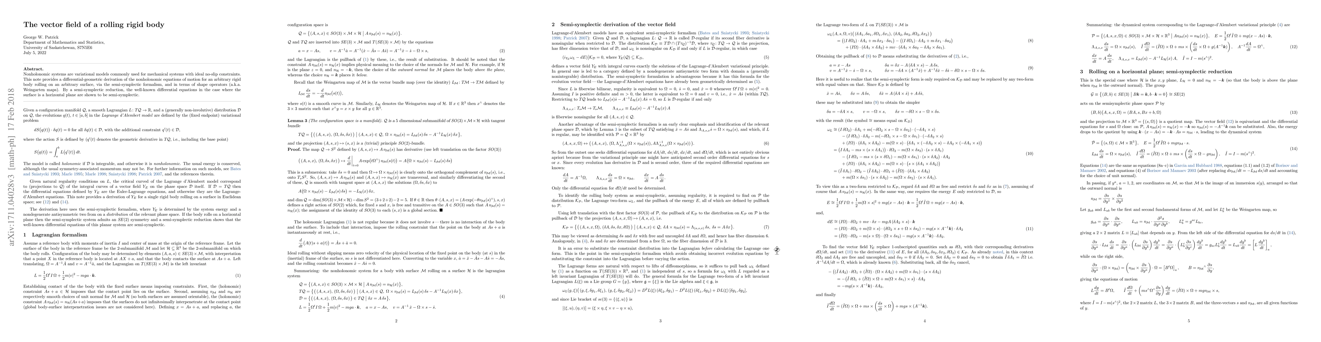 Nonholonomic systems are variational models commonly used for mechanical systems with ideal no-slip constraints. This note provides a differential-geometric derivation of the nonholonomic equations of motion for an arbitrary rigid body rolling on an arbitrary surface, via the semi-symplectic formalism, and in terms of shape operators (a.k.a. Weingarten maps). By a semi-symplectic reduction, the well-known differential equations in the case where the surface is a horizontal plane are shown to be semi-symplectic.