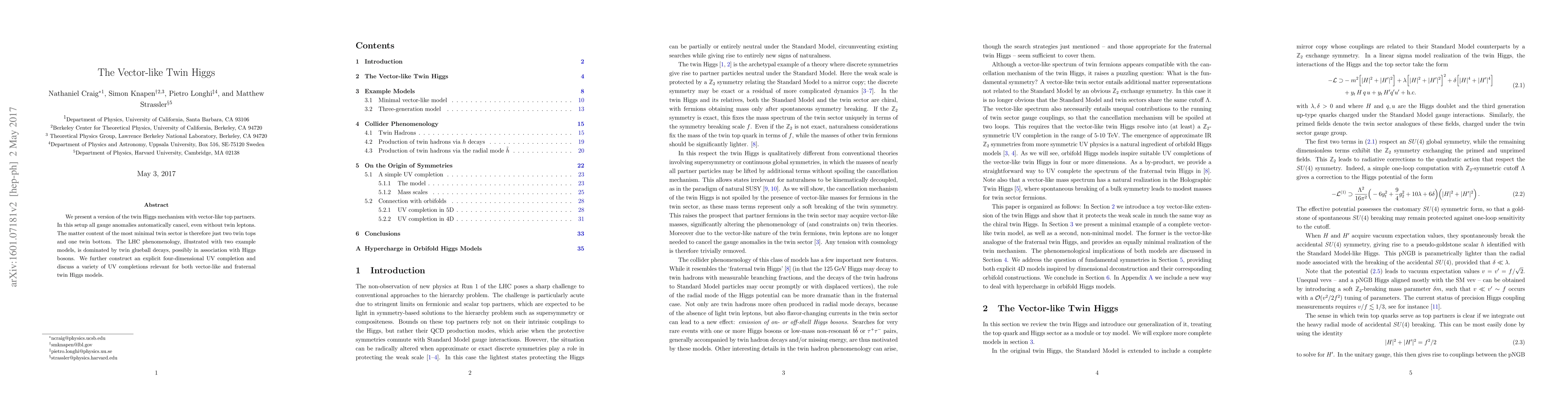 We present a version of the twin Higgs mechanism with vector-like top partners. In this setup all gauge anomalies automatically cancel, even without twin leptons. The matter content of the most minimal twin sector is therefore just two twin tops and one twin bottom. The LHC phenomenology, illustrated with two example models, is dominated by twin glueball decays, possibly in association with Higgs bosons. We further construct an explicit four-dimensional UV completion and discuss a variety of UV completions relevant for both vector-like and fraternal twin Higgs models.
