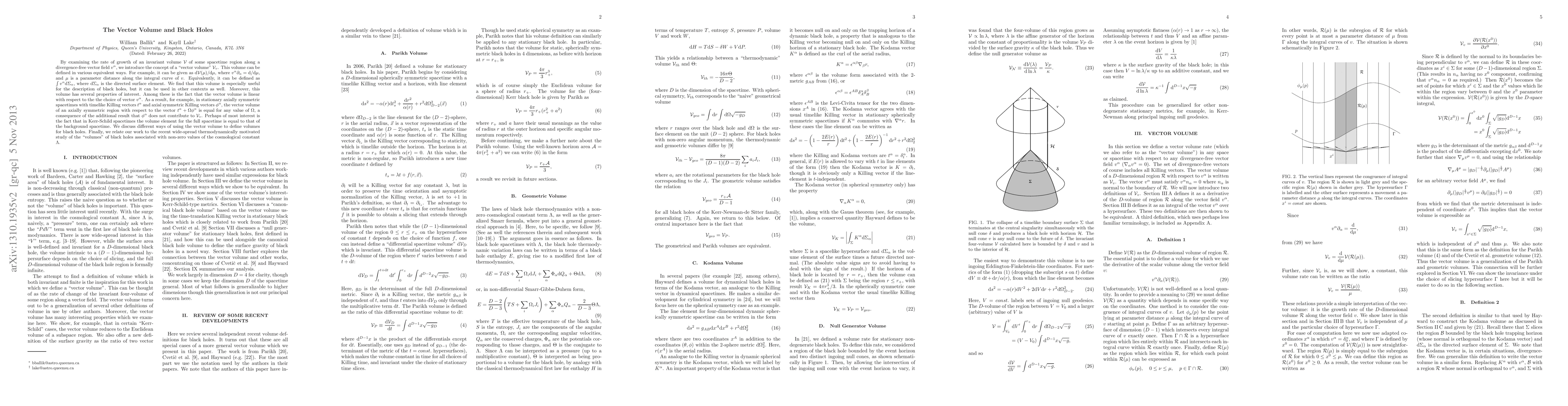 By examining the rate of growth of an invariant volume $\mathcal V$ of some spacetime region along a divergence-free vector field $v^\alpha$, we introduce the concept of a "vector volume" $\mathcal{V}_v$. This volume can be defined in various equivalent ways. For example, it can be given as $\mathrm d \mathcal V(\mu) / \mathrm d \mu$, where $v^\alpha \partial_\alpha = \mathrm d / \mathrm d \mu$, and $\mu$ is a parameter distance along the integral curve of $v$. Equivalently, it can be defined as $\int v^\alpha \mathrm d \Sigma_\alpha$, where $\mathrm d \Sigma_\alpha$ is the directed surface element. We find that this volume is especially useful for the description of black holes, but it can be used in other contexts as well. Moreover, this volume has several properties of interest. Among these is the fact that the vector volume is linear with respect to the the choice of vector $v^\alpha$. As a result, for example, in stationary axially symmetric spacetimes with timelike Killing vectors $t^\alpha$ and axial symmetric Killing vectors $\phi^\alpha$, the vector volume of an axially symmetric region with respect to the vector $t^\alpha + \Omega \phi^\alpha$ is equal for any value of $\Omega$, a consequence of the additional result that $\phi^\alpha$ does not contribute to $\mathcal{V}_v$. Perhaps of most interest is the fact that in Kerr-Schild spacetimes the volume element for the full spacetime is equal to that of the background spacetime. We discuss different ways of using the vector volume to define volumes for black holes. Finally, we relate our work to the recent wide-spread thermodynamically motivated study of the "volumes" of black holes associated with non-zero values of the cosmological constant $\Lambda$.