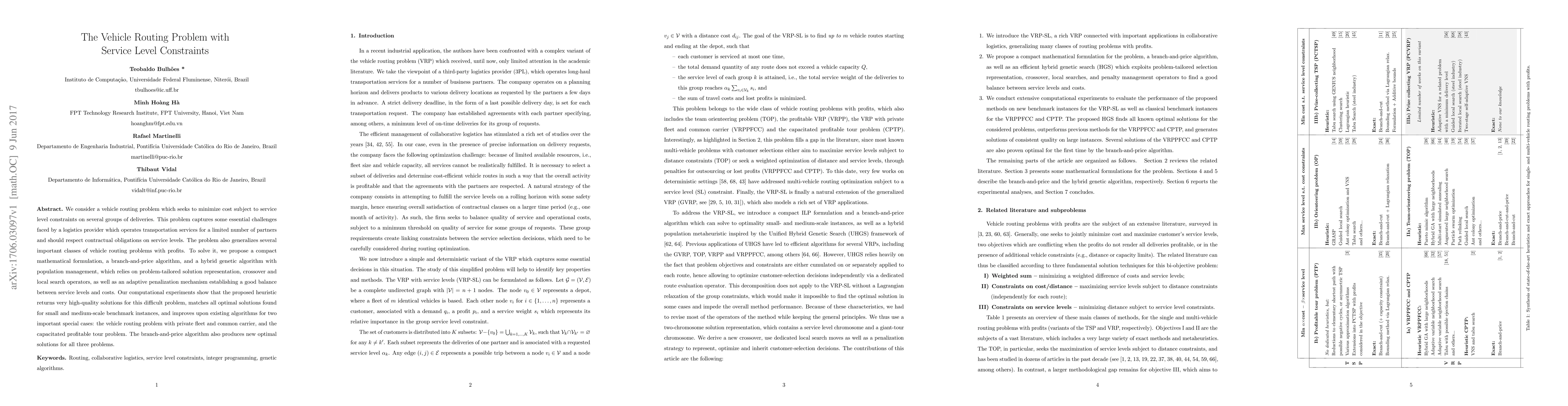 This paper addresses the vehicle routing problem with service level constraints, proposing a mathematical formulation, a branch-and-price algorithm, and a hybrid genetic algorithm to minimize cost while respecting delivery obligations. Computational results show the effectiveness of the proposed methods, outperforming existing algorithms in special cases.