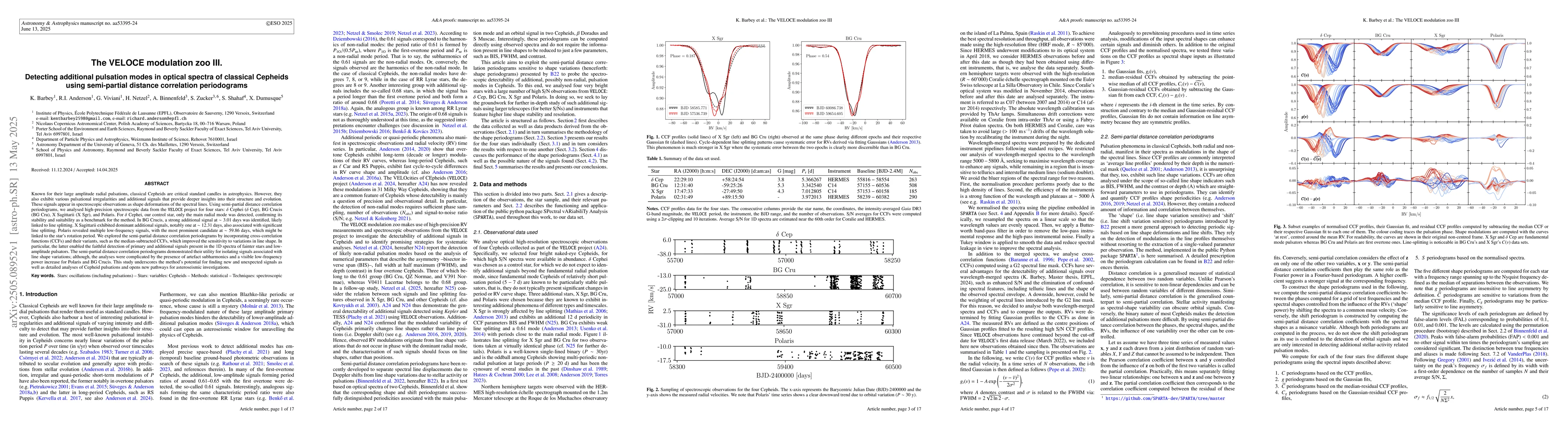 The research employs semi-partial distance correlation periodograms to analyze high-precision spectroscopic data from the VELOCE project for classical Cepheids, incorporating CCFs and their variants to improve sensitivity to line shape variations.
