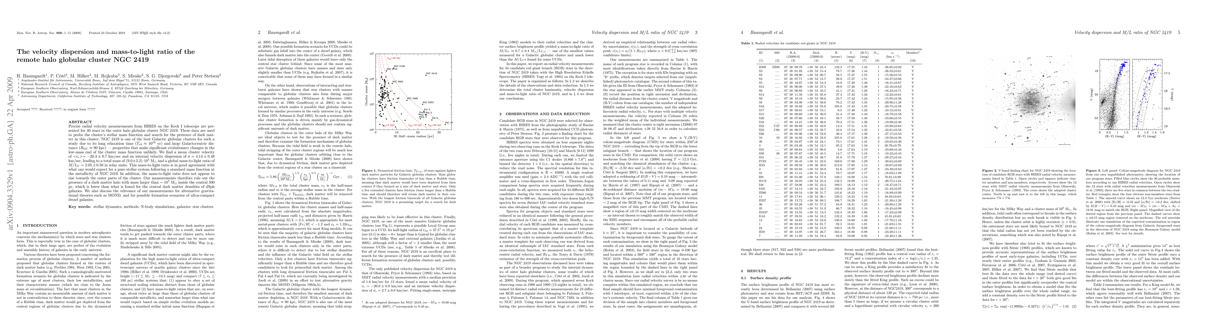 presence of dark matter in this cluster. NGC 2419 is one of the best Galactic