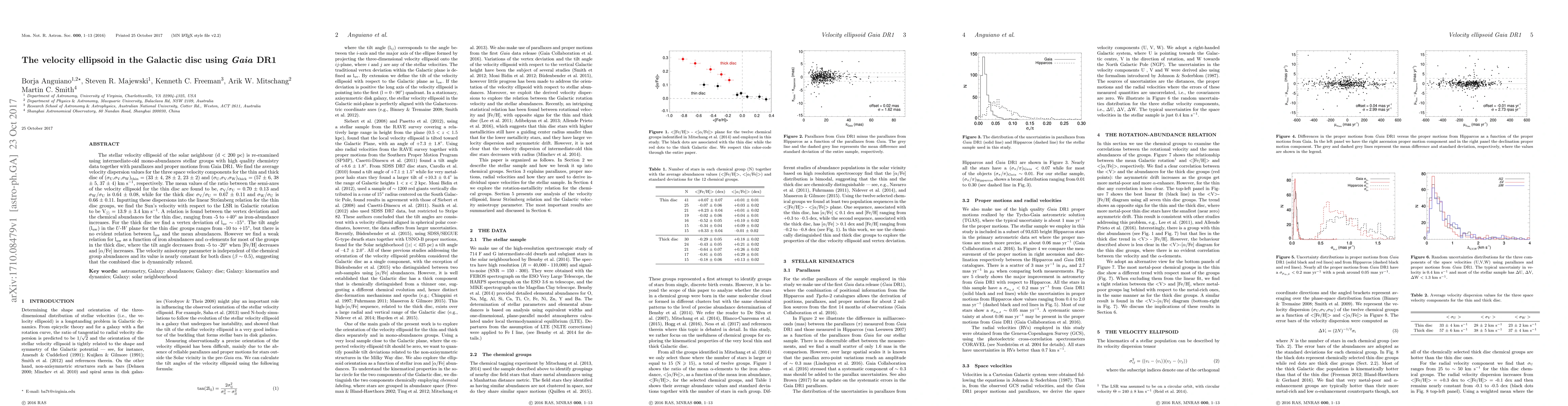 The stellar velocity ellipsoid of the solar neighbour is re-examined using intermediate-old mono-abundances stellar groups with high quality chemistry data together with parallaxes and proper motions from Gaia DR1. We find the average velocity dispersion values for the three space velocity components for the thin and thick disc of (\sigma_{U},\sigma_{V},\sigma_{W})_{thin} = (33 \pm 4, 28 \pm 2, 23 \pm 2) and (\sigma_{U},\sigma_{V},\sigma_{W})_{thick} = (57 \pm 6, 38 \pm 5, 37 \pm 4) km s^{-1}, respectively. The mean values of the ratio between the semi-axes of the velocity ellipsoid for the thin disc are found to be, \sigma_{V}/\sigma_{U} = 0.70 \pm 0.13 and \sigma_{W}/\sigma_{U} is 0.64 \pm 0.08, while for the thick disc \sigma_{V}/\sigma_{U} = 0.67 \pm 0.11 and \sigma_{W}/\sigma_{U} is 0.66 \pm 0.11. Inputting these dispersions into the linear Str\"omberg relation for the thin disc groups, we find the Sun's velocity with respect to the LSR in Galactic rotation to be V_{\sun} = 13.9 \pm 3.4 km s^{-1}. A relation is found between the vertex deviation and the chemical abundances for the thin disc, ranging from -5 to +40^{\circ} as iron-abundance increases. For the thick disc we find a vertex deviation of l_{uv} \sim -15^{\circ}. The tilt angle (l_{uw}) in the U-W plane for the thin disc groups ranges from -10 to +15^\circ, but there is no evident relation between l_{uw} and the mean abundances. However we find a weak relation for l_{uw} as a function of iron abundances and \alpha-elements for most of the groups in the thick disc, where the tilt angle decreases from -5 to -20^\circ when [Fe/H] decreases and [\alpha/Fe] increases. The velocity anisotropy parameter is independent of the chemical group abundances and its value is nearly constant for both discs (\beta \sim 0.5), suggesting that the combined disc is dynamically relaxed.