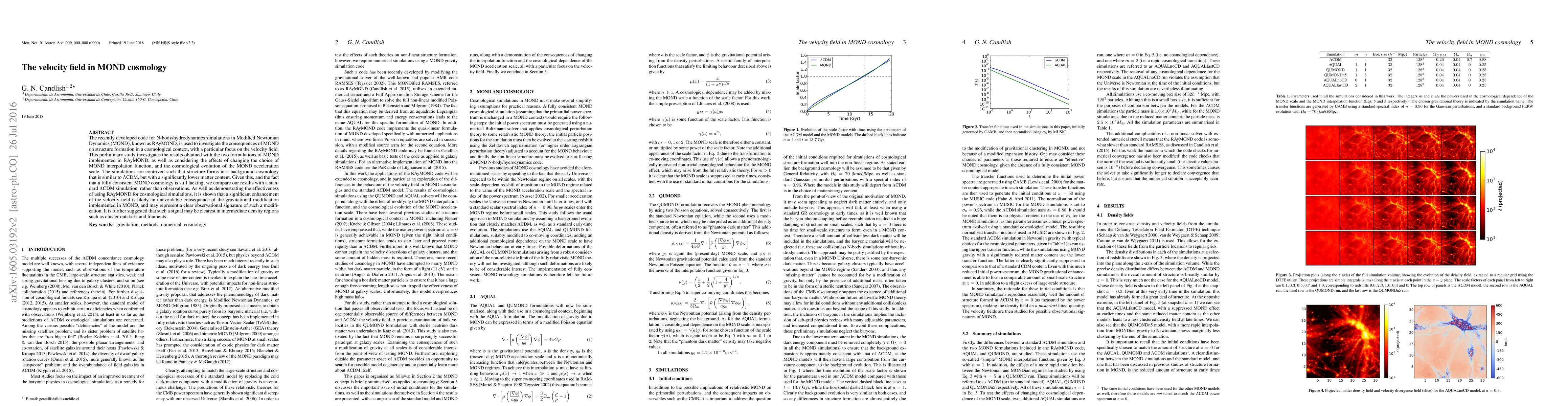 This paper uses RAyMOND simulations to explore the velocity field in MOND cosmology, comparing results from different MOND formulations and interpolation functions. It finds that MOND likely enhances the velocity field, potentially offering an observational signature, especially in intermediate density regions.