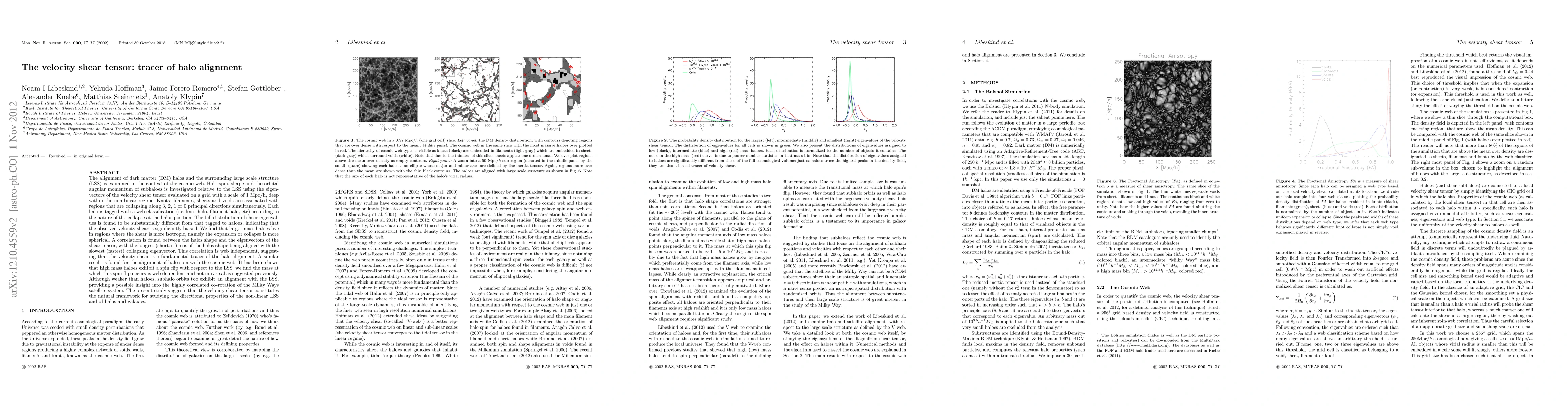 The alignment of DM halos and the surrounding large scale structure (LSS) is examined in the context of the cosmic web. Halo spin, shape and the orbital angular momentum of subhaloes is investigated relative to the LSS using the eigenvectors of the velocity shear tensor evaluated on a grid with a scale of 1 Mpc/h, deep within the non-linear regime. Knots, filaments, sheets and voids are associated with regions that are collapsing along 3, 2, 1 or 0 principal directions simultaneously. Each halo is tagged with a web classification (i.e. knot halo, filament halo, etc) according to the nature of the collapse at the halo's position. The full distribution of shear eigenvalues is found to be substantially different from that tagged to haloes, indicating that the observed velocity shear is significantly biased. We find that larger mass haloes live in regions where the shear is more isotropic, namely the expansion or collapse is more spherical. A correlation is found between the halo's shape and the eigenvectors of the shear tensor, with the longest (shortest) axis of the halo's shape being aligned with the slowest (fastest) collapsing eigenvector. This correlation is web independent, suggesting that the velocity shear is a fundamental tracer of the halo alignment. A similar result is found for the alignment of halo spin with the cosmic web. It has been shown that high mass haloes exhibit a spin flip with respect to the LSS: we find the mass at which this spin flip occurs is web dependent and not universal as suggested previously. Although weaker than haloes, subhalo orbits too exhibit an alignment with the LSS, providing a possible insight into the highly correlated co-rotation of the Milky Way's satellite system. The present study suggests that the velocity shear tensor constitutes the natural framework for studying the directional properties of the non-linear LSS and of halos and galaxies.