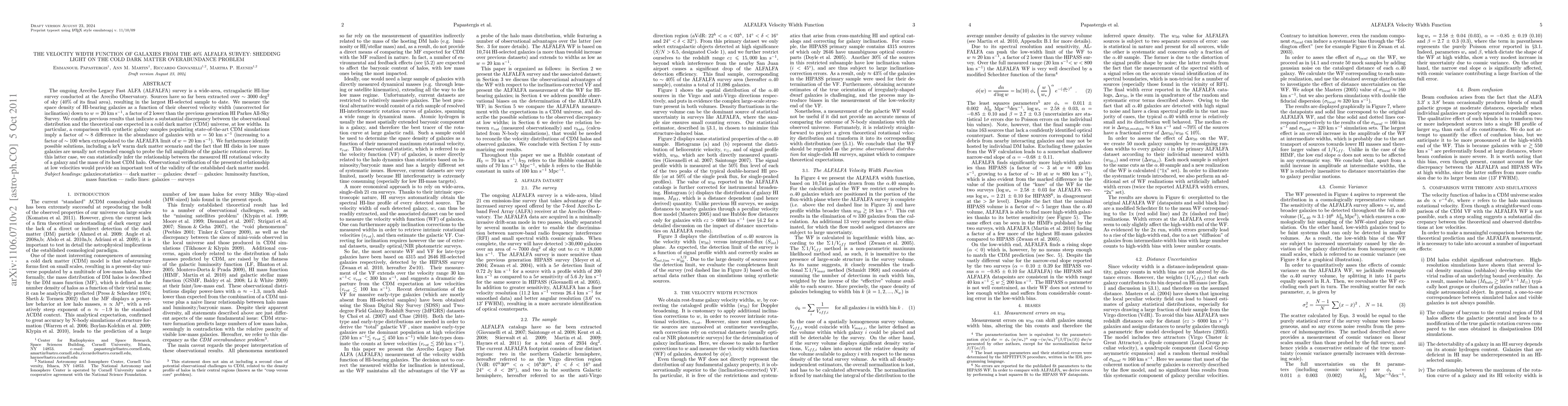 The ALFALFA survey, a large-scale HI-line study, reveals a significant discrepancy between observed and expected galaxy distributions in a cold dark matter universe, especially at low velocity widths. Possible solutions include a warm dark matter scenario and the limited HI disk extension in low-mass galaxies affecting rotation curve probing. Verification of proposed HI-velocity to CDM halo mass relationship at low velocities could validate or challenge the dark matter model.