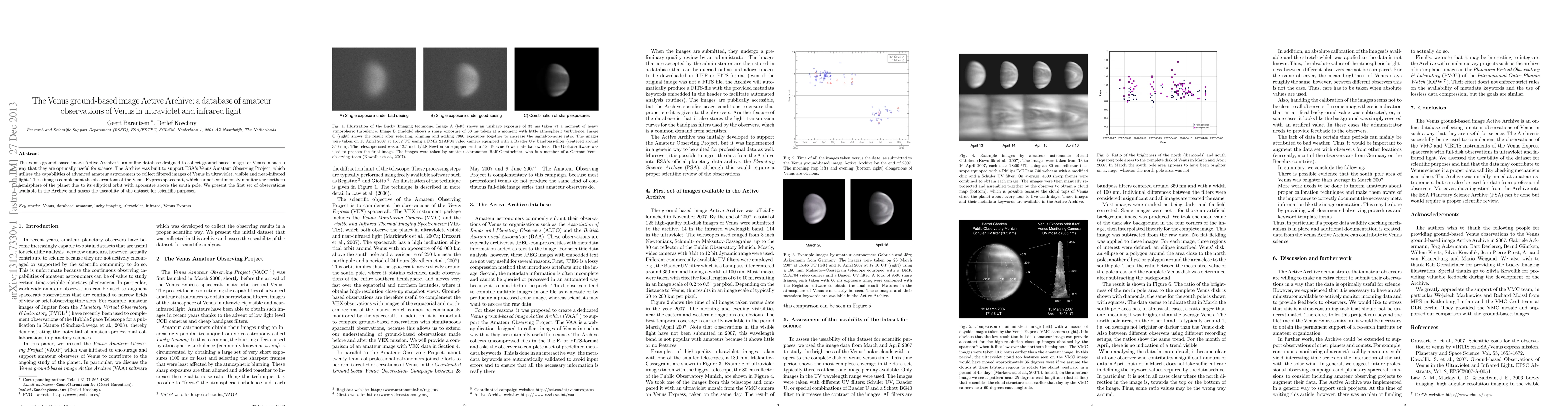 The Venus ground-based image Active Archive collects ground-based images of Venus in ultraviolet and infrared light, supporting ESA's Venus Amateur Observing Project. The dataset complements Venus Express observations and is assessed for its scientific usability.