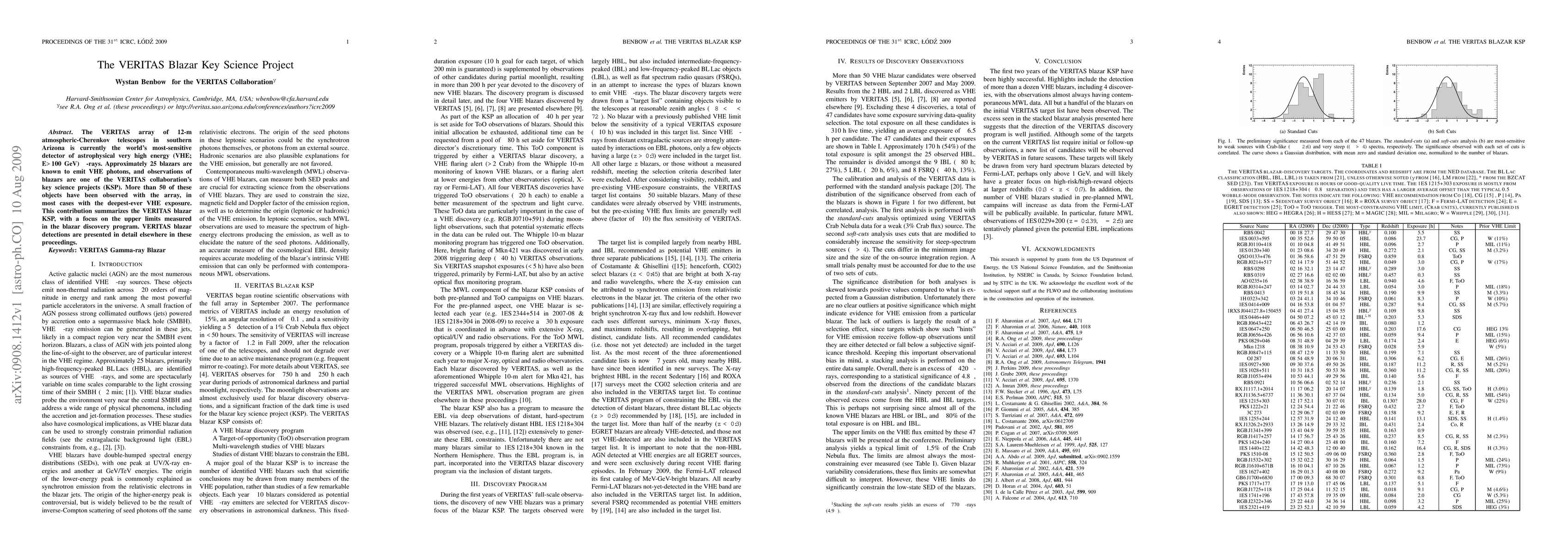 The VERITAS Blazar Key Science Project utilizes the VERITAS array to detect very high energy (VHE) gamma rays from approximately 25 known blazars, observing more than 50 of these objects with unprecedented sensitivity, and reporting on the upper limits achieved in the blazar discovery program.