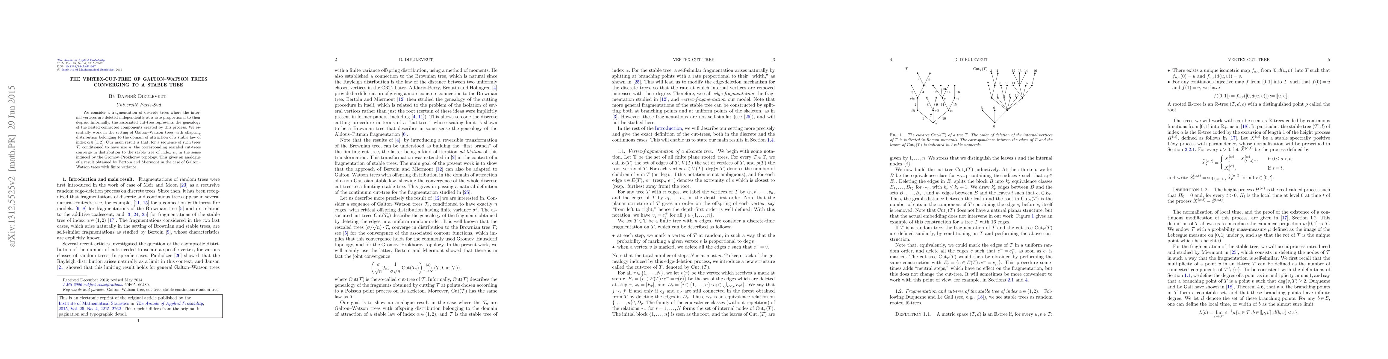 The paper establishes a convergence result for cut-trees of conditioned Galton-Watson trees under fragmentation, extending known results for finite variance cases to stable laws.