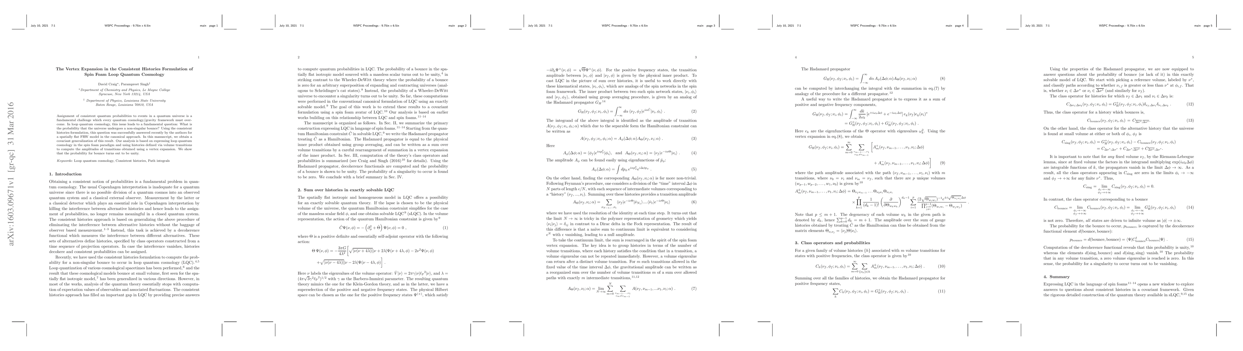 This paper generalizes the consistent histories formulation to a covariant spin foam approach in loop quantum cosmology, demonstrating that the probability of a non-singular universe bounce is unity through a vertex expansion. The study provides a robust framework for assigning quantum probabilities in quantum cosmology.