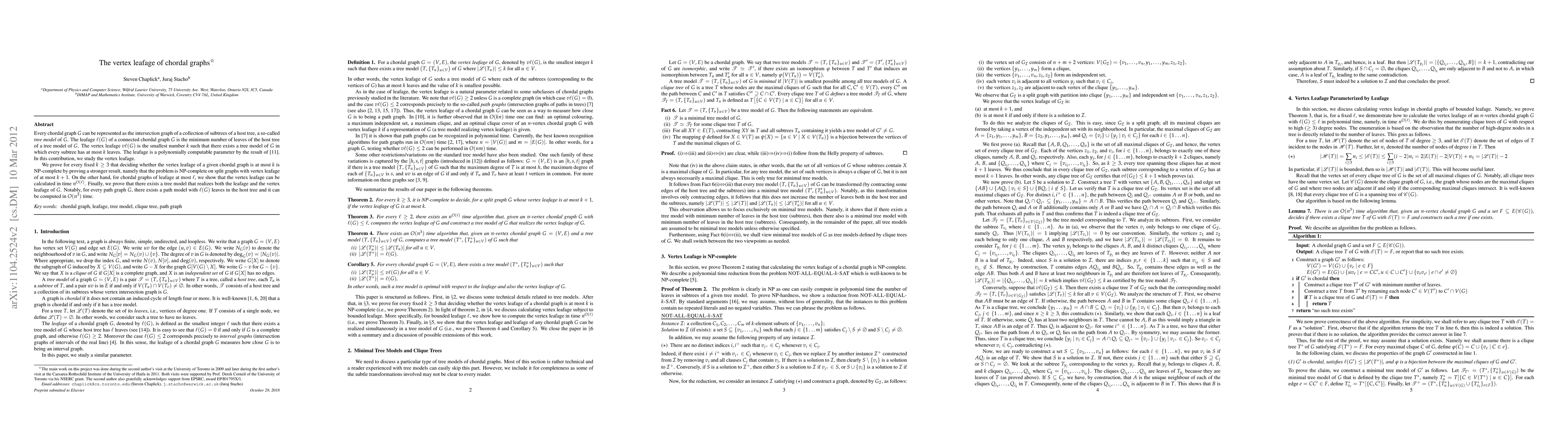 A new characterization of chordal graphs using their leafage was established, providing insights into their structure and properties.