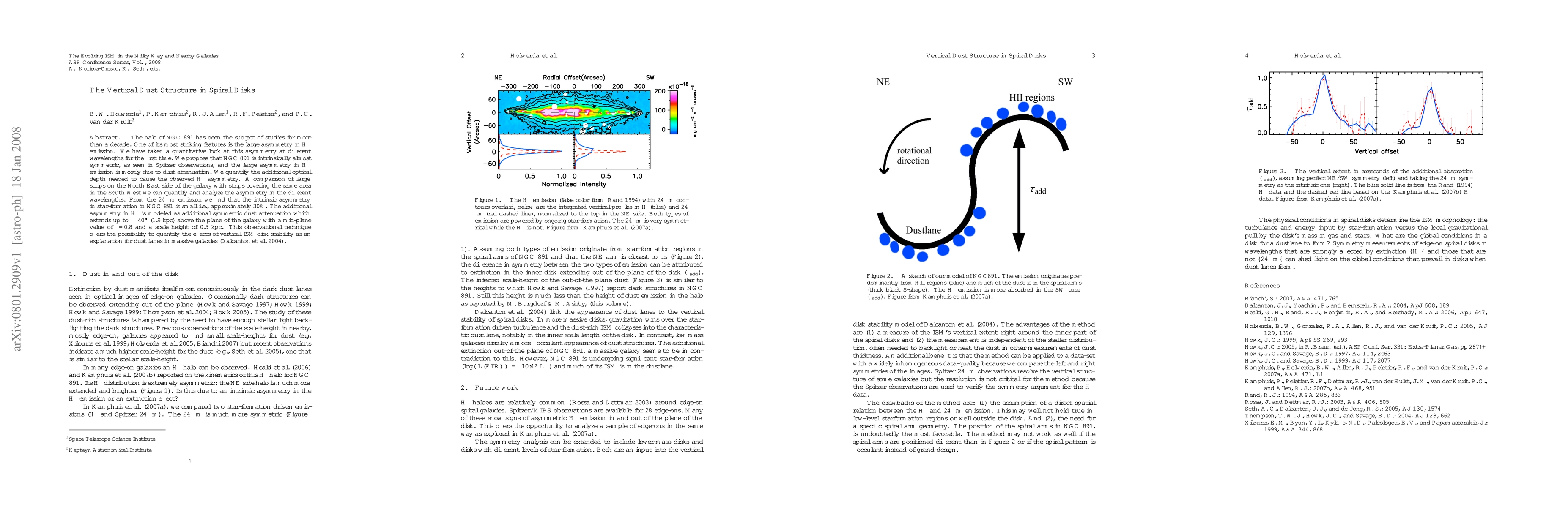 The halo of NGC 891 has been the subject of studies for more than a decade. One of its most striking features is the large asymmetry in H-$\alpha$ emission. We have taken a quantitative look at this asymmetry at different wavelengths for the first time. We propose that NGC 891 is intrinsically almost symmetric, as seen in Spitzer observations, and the large asymmetry in H-$\alpha$ emission is mostly due to dust attenuation. We quantify the additional optical depth needed to cause the observed H-$\alpha$ asymmetry. A comparison of large strips on the North East side of the galaxy with strips covering the same area in the South West we can quantify and analyze the asymmetry in the different wavelengths. From the 24 $\mu$m emission we find that the intrinsic asymmetry in star-formation in NGC 891 is small i.e., approximately 30%. The additional asymmetry in H-alpha is modeled as additional symmetric dust attenuation which extends up to ~ 40'' (1.9 kpc) above the plane of the galaxy with a mid-plane value of $\tau$=0.8 and a scale height of 0.5 kpc. This observational technique offers the possibility to quantify the effects of vertical ISM disk stability as an explanation for dust lanes in massive galaxies Dalcanton et al. (2004).