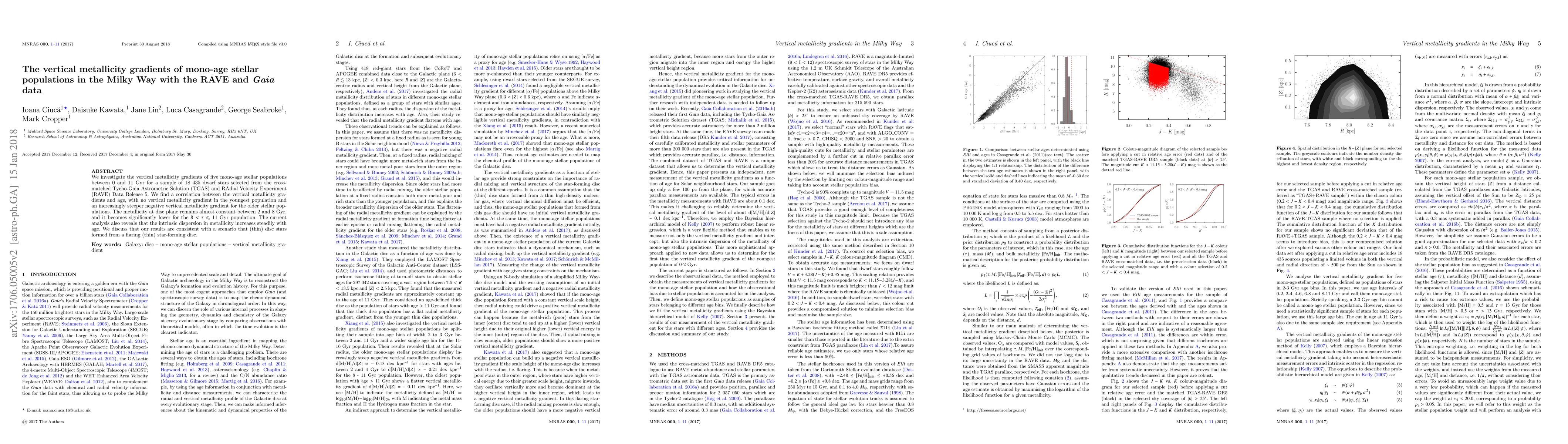 This study examines the vertical metallicity gradients of five age-defined stellar populations in the Milky Way using RAVE and Gaia data, finding a correlation between age and gradient steepness, with no gradient in the youngest population and a steep negative gradient in older populations. The metallicity at the disc plane remains stable until it drops significantly in the oldest population, suggesting a flaring star-forming disc model.