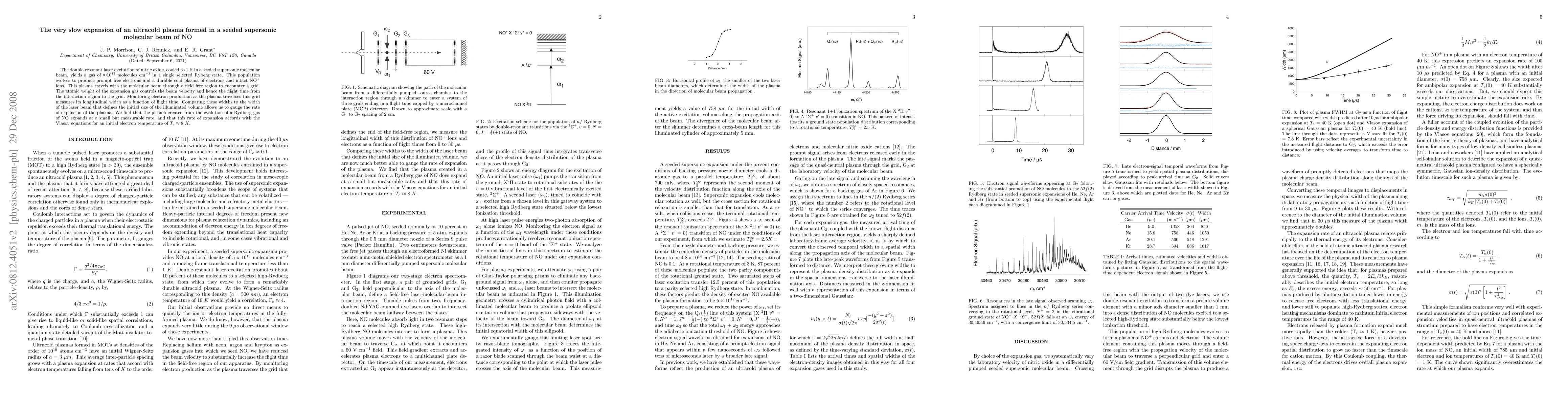 The double-resonant laser excitation of nitric oxide, cooled to 1 K in a seeded supersonic molecular beam, yields a gas of $\approx10^{12}$ molecules cm$^{-3}$ in a single selected Ryberg state. This population evolves to produce prompt free electrons and a durable cold plasma of electrons and intact NO$^{+}$ ions. This plasma travels with the molecular beam through a field free region to encounter a grid. The atomic weight of the expansion gas controls the beam velocity and hence the flight time from the interaction region to the grid. Monitoring electron production as the plasma traverses this grid measures its longitudinal width as a function of flight time. Comparing these widths to the width of the laser beam that defines the initial size of the illuminated volume allows us to gauge the rate of expansion of the plasma. We find that the plasma created from the evolution of a Rydberg gas of NO expands at a small but measurable rate, and that this rate of expansion accords with the Vlasov equations for an initial electron temperature of $T_{e} \approx 8 K$.