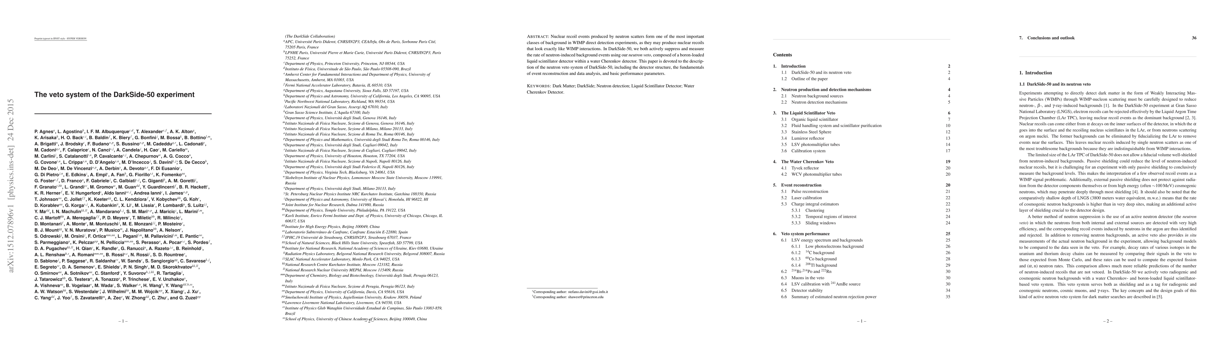 The DarkSide-50 experiment employs a neutron veto system using a boron-loaded liquid scintillator detector to actively suppress and measure neutron-induced background events, which resemble WIMP interactions. This paper details the veto system's structure, event reconstruction methods, and its performance metrics.