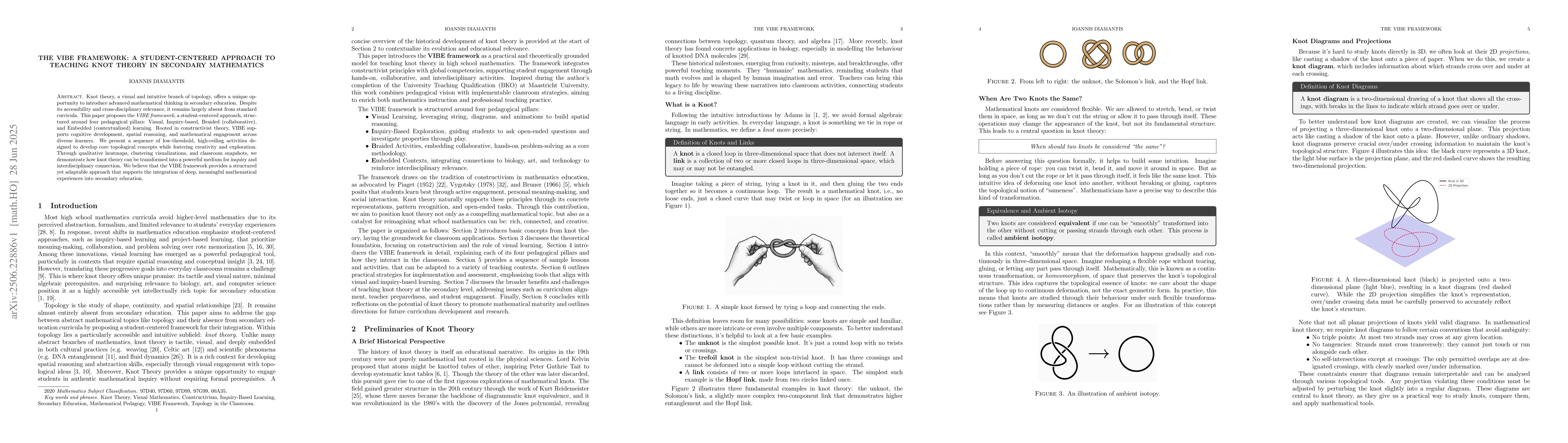 Knot theory, a visual and intuitive branch of topology, offers a unique opportunity to introduce advanced mathematical thinking in secondary education. Despite its accessibility and cross-disciplinary relevance, it remains largely absent from standard curricula. This paper proposes the {\it VIBE framework}, a student-centered approach, structured around four pedagogical pillars: Visual, Inquiry-based, Braided (collaborative), and Embedded (contextualized) learning. Rooted in constructivist theory, VIBE supports cognitive development, spatial reasoning, and mathematical engagement across diverse learners. We present a sequence of low-threshold, high-ceiling activities designed to develop core topological concepts while fostering creativity and exploration. Through qualitative heatmaps, clustering visualizations, and classroom snapshots, we demonstrate how knot theory can be transformed into a powerful medium for inquiry and interdisciplinary connection. We believe that the VIBE framework provides a structured yet adaptable approach that supports the integration of deep, meaningful mathematical experiences into secondary education.