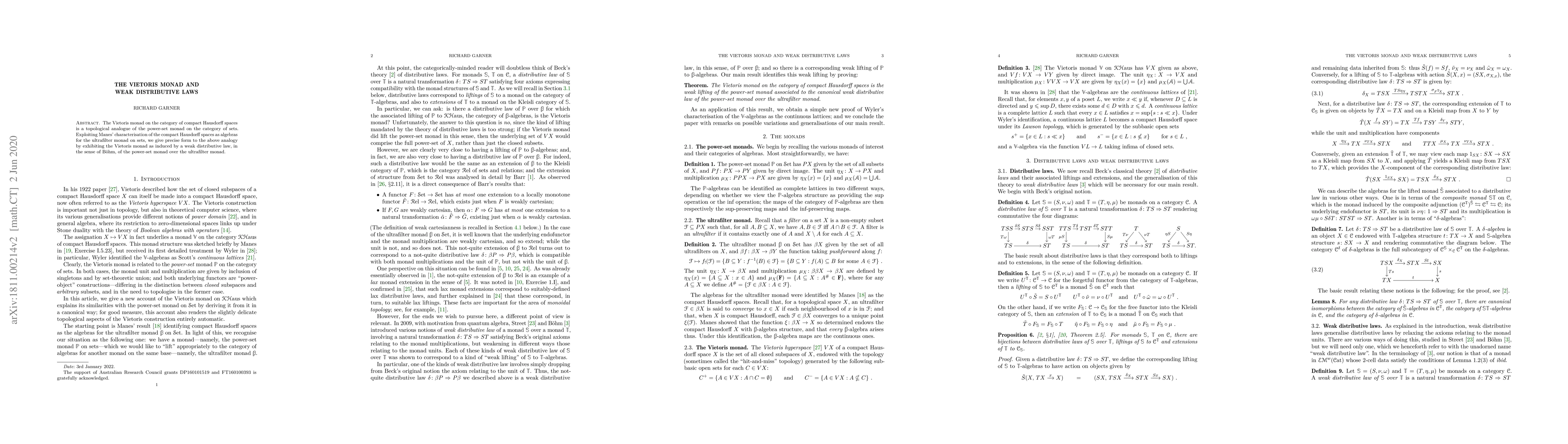 The Vietoris monad on compact Hausdorff spaces is shown to be analogous to the power-set monad on sets through a weak distributive law, revealing a topological connection between these two monads. This connection is established using Manes' characterization of compact Hausdorff spaces as ultrafilter monad algebras.