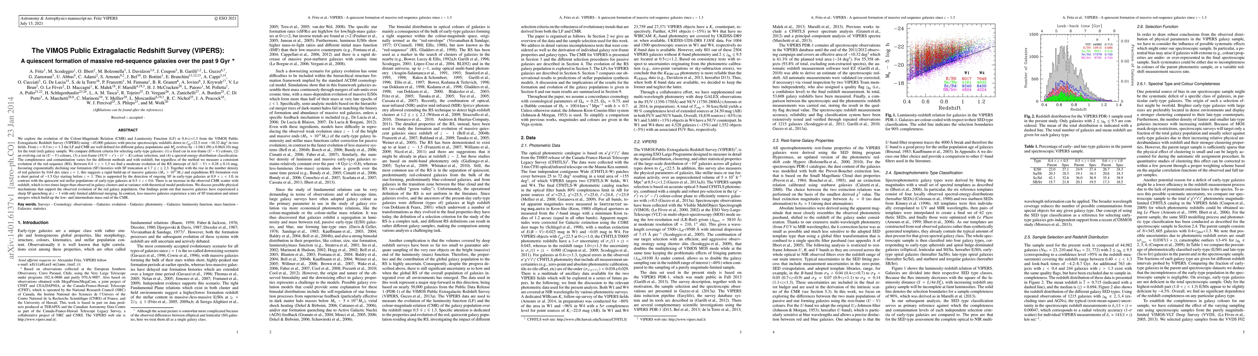 The VIMOS Public Extragalactic Redshift Survey (VIPERS) reveals a rapid build-up of massive red-sequence galaxies over the last 9 Gyr, with a sharp star formation quenching around z~1. The study finds a moderate evolution in the red-sequence intercept, indicating a quiescent formation of these galaxies.