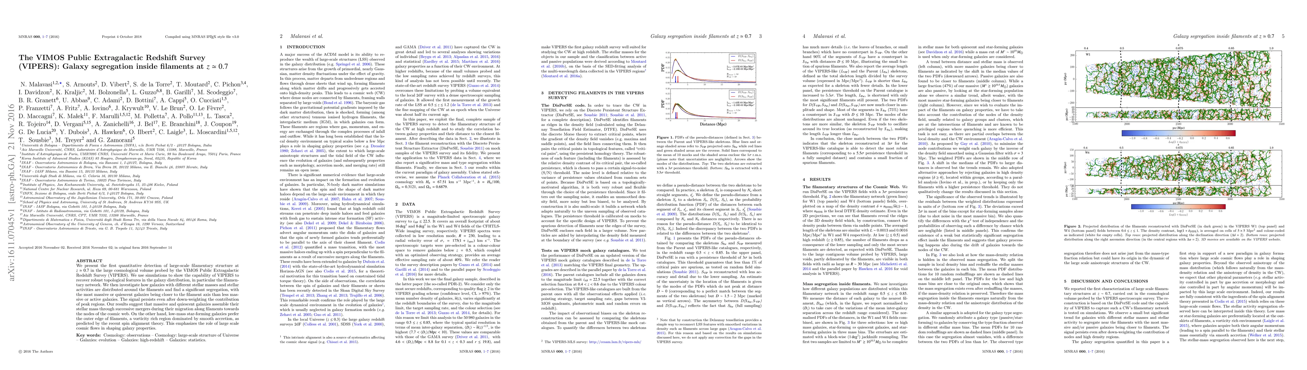 The VIPERS survey detects large-scale filamentary structures at $z \simeq 0.7$ and reveals galaxy segregation within filaments, with massive and quiescent galaxies located closer to the filament axis and low-mass star-forming galaxies preferring the outer edges. This suggests that galaxy evolution is influenced by cosmic web flows.