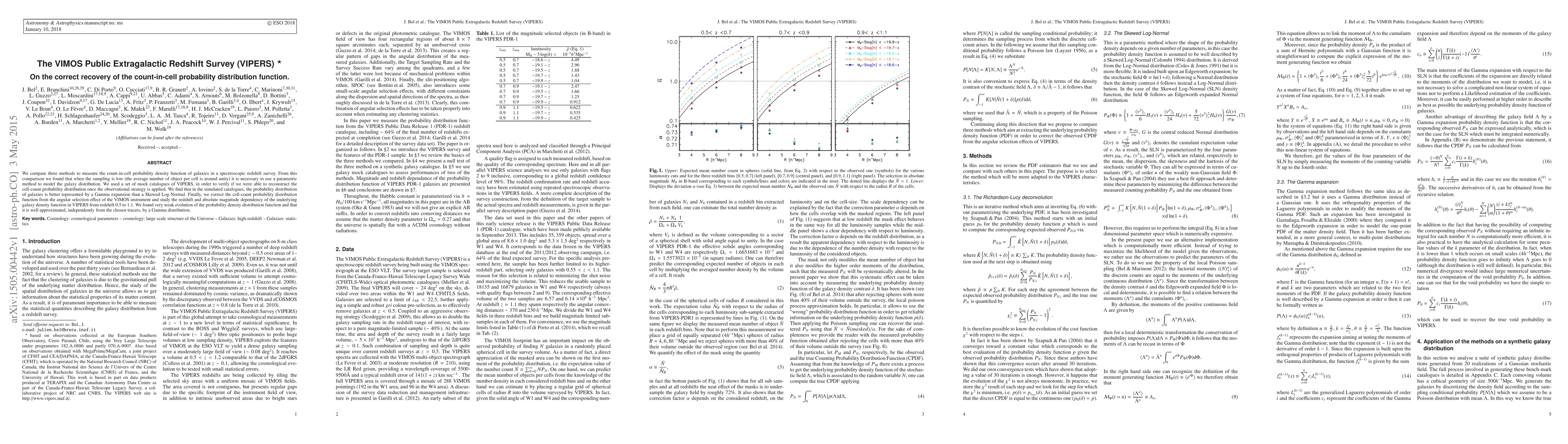 The study evaluates methods to accurately measure the distribution of galaxy counts in survey cells, finding that a Gamma distribution best models the data, especially at low sampling levels. Applying this approach to VIPERS data reveals minimal evolution in galaxy density distribution from redshift 0.5 to 1.1, improving understanding of galaxy clustering.