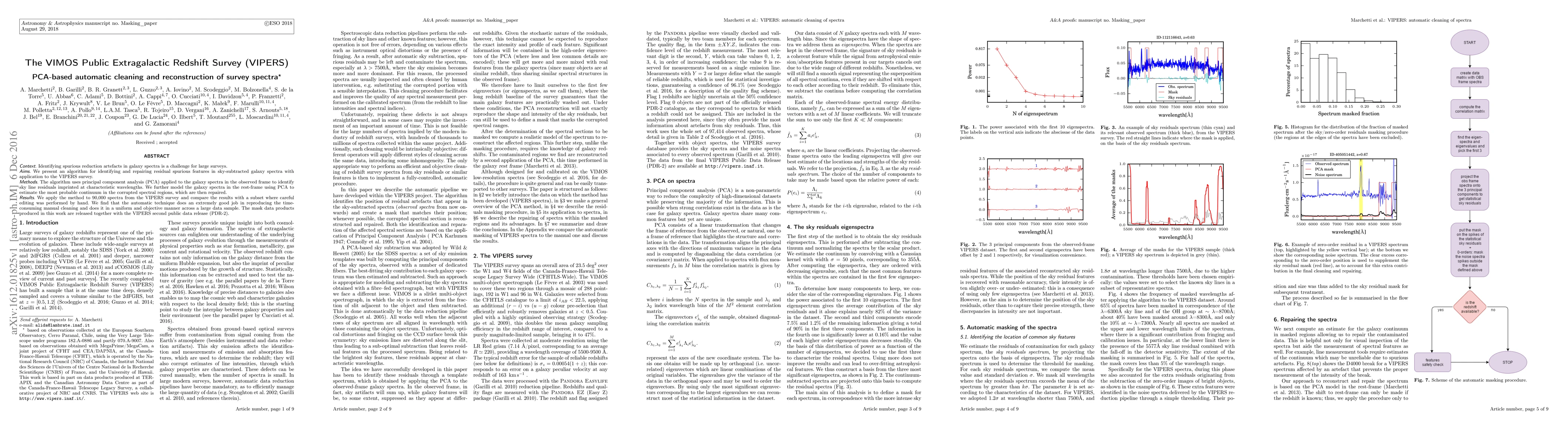 Identifying spurious reduction artefacts in galaxy spectra is a challenge for large surveys. We present an algorithm for identifying and repairing residual spurious features in sky-subtracted galaxy spectra with application to the VIPERS survey. The algorithm uses principal component analysis (PCA) applied to the galaxy spectra in the observed frame to identify sky line residuals imprinted at characteristic wavelengths. We further model the galaxy spectra in the rest-frame using PCA to estimate the most probable continuum in the corrupted spectral regions, which are then repaired. We apply the method to 90,000 spectra from the VIPERS survey and compare the results with a subset where careful editing was performed by hand. We find that the automatic technique does an extremely good job in reproducing the time-consuming manual cleaning and does it in a uniform and objective manner across a large data sample. The mask data products produced in this work are released together with the VIPERS second public data release (PDR-2).