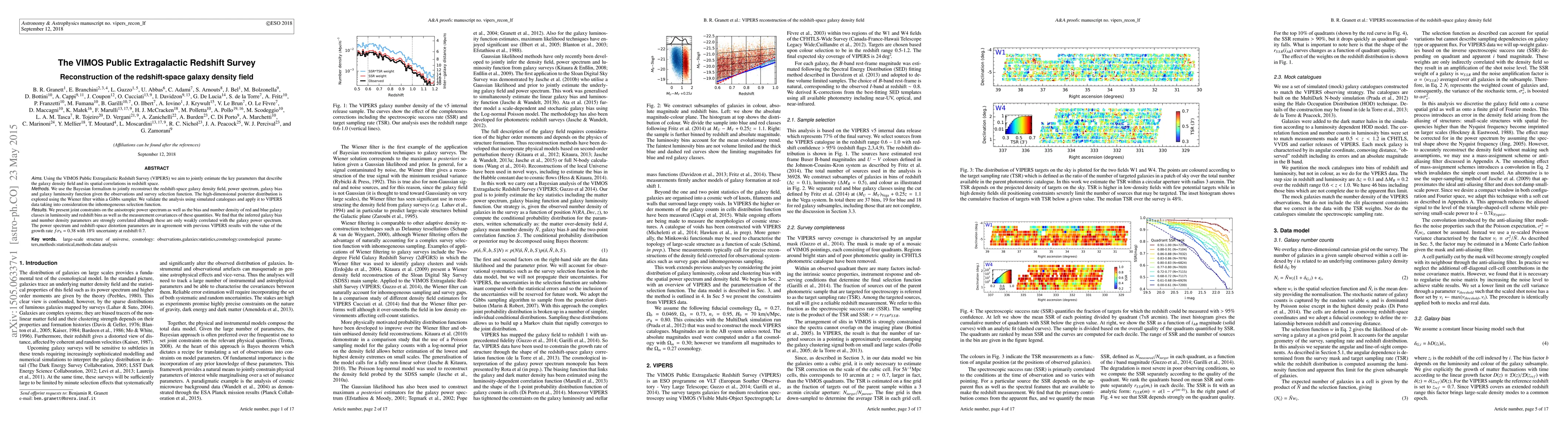 The VIMOS Public Extragalactic Redshift Survey (VIPERS) reconstructs the redshift-space galaxy density field using Bayesian methods, revealing strong correlations between galaxy bias and number density parameters. The inferred growth rate $f\sigma_8 = 0.38$ at redshift 0.7 aligns with previous results.