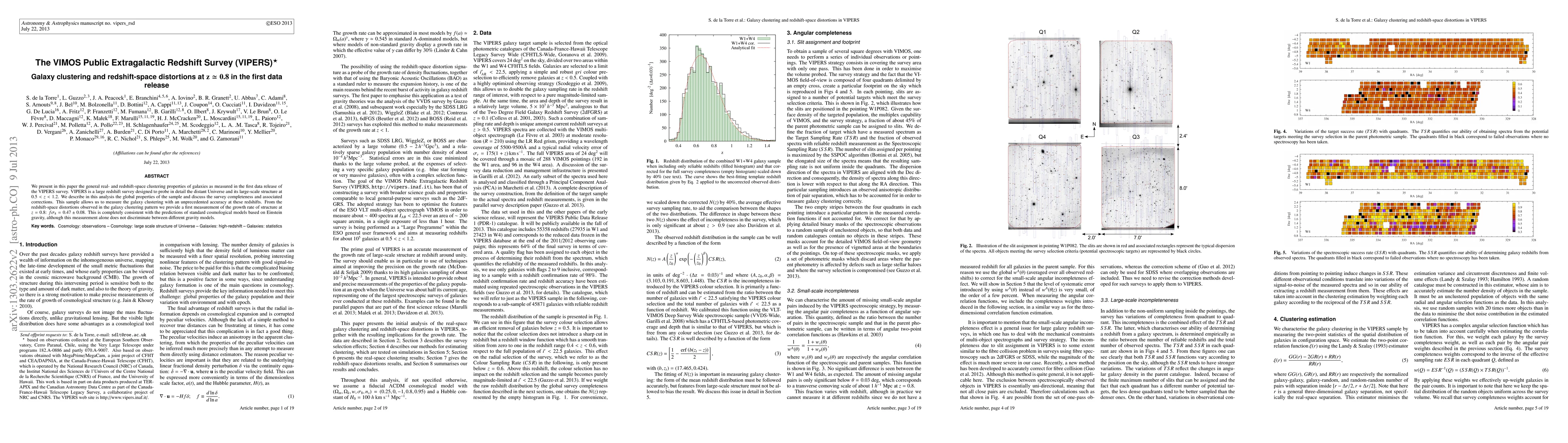 This paper analyzes galaxy clustering and redshift-space distortions from the VIPERS survey's first data release, measuring galaxy clustering at z=0.8 with high accuracy. The study provides a growth rate of structure measurement, fσ_8 = 0.47 ± 0.08, consistent with standard cosmological models but not definitive for different gravity theories.