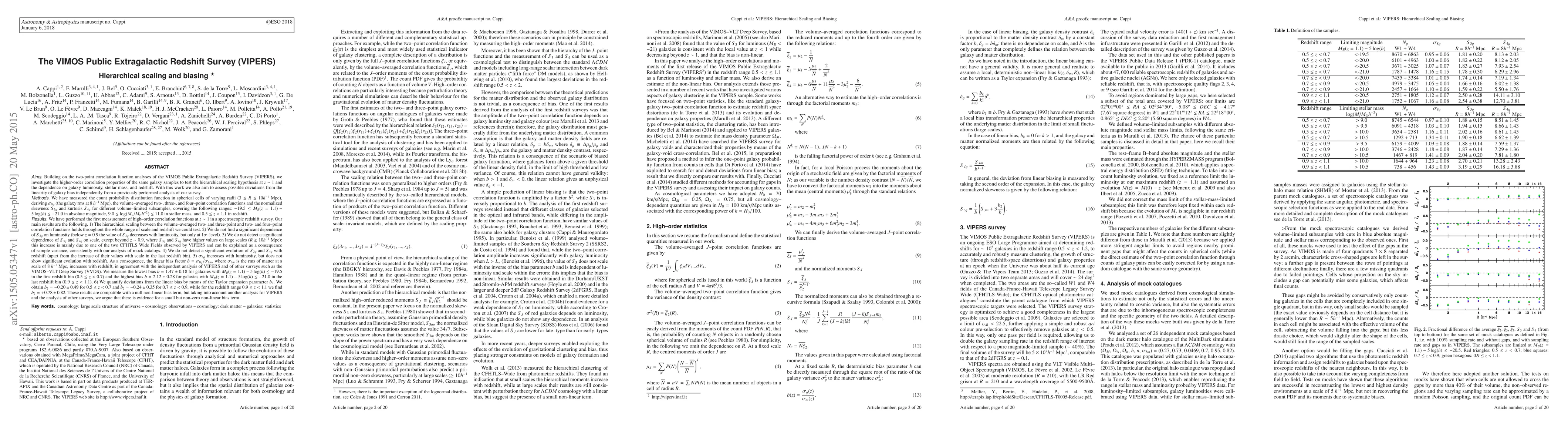 The VIPERS survey investigates higher-order correlation properties to test hierarchical scaling and biasing at z~1, finding that hierarchical scaling holds across scales and redshifts, with no significant dependence on luminosity or scale for skewness and kurtosis. The linear bias factor increases with redshift, and while deviations from linear bias are minimal, there is some evidence for a small non-linear bias term.