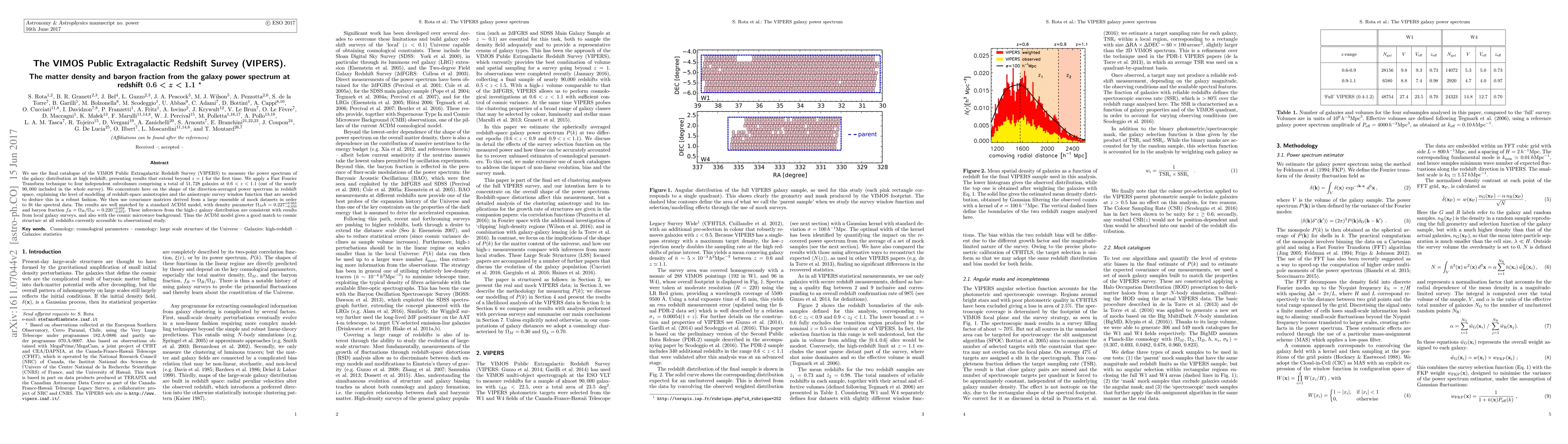 The VIMOS Public Extragalactic Redshift Survey (VIPERS) measures the galaxy power spectrum at redshifts $0.6<z<1.1$, revealing insights into matter density and baryon fraction using FFT techniques. The results support a standard $\Lambda$CDM model with $\Omega_M h = 0.227^{+0.063}_{-0.050}$ and $f_B = 0.220^{+0.058}_{-0.072}$, consistent with local surveys and the Cosmic Microwave Background.