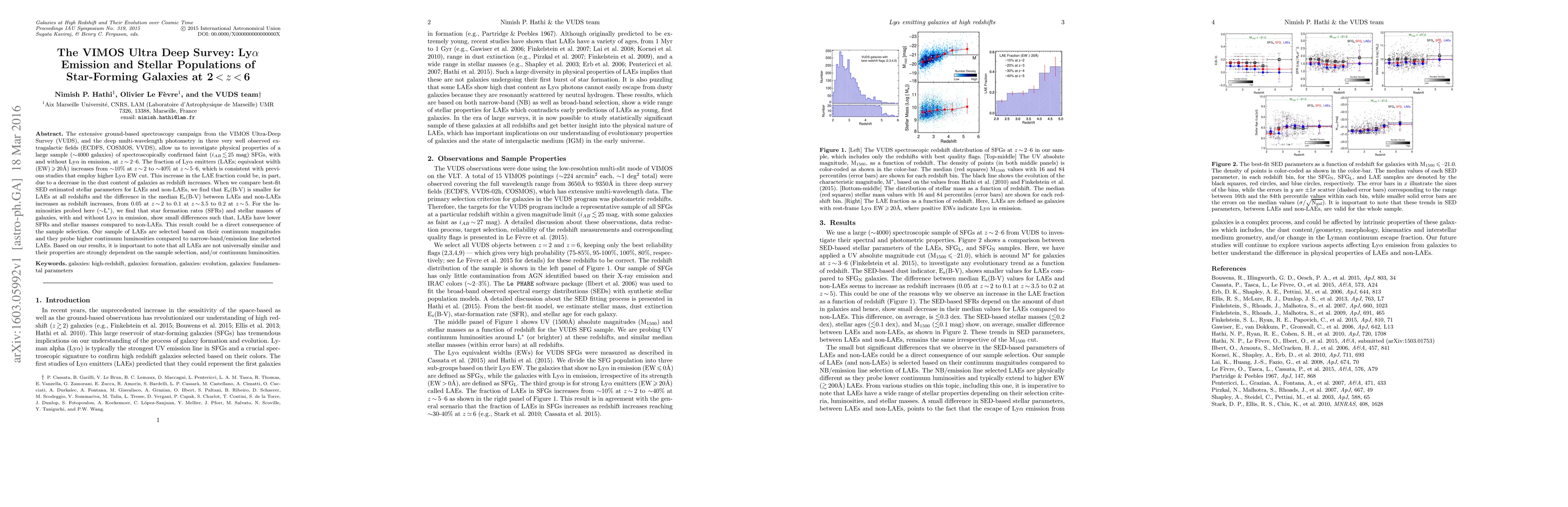 The VIMOS Ultra Deep Survey reveals that the fraction of Lyman alpha emitters (LAEs) increases from ~10% at z~2 to ~40% at z~5-6, likely due to decreasing dust content with higher redshift. LAEs exhibit lower dust content and slightly lower star formation rates and stellar masses compared to non-LAEs, suggesting sample selection and luminosity influence LAE properties.