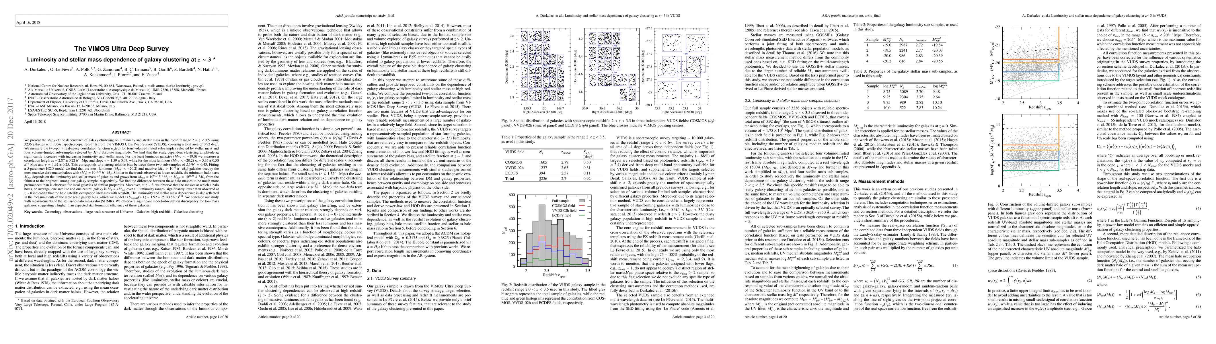 This study investigates the relationship between galaxy clustering and luminosity/stellar mass in galaxies at redshifts 2 < z < 3.5 using the VIMOS Ultra Deep Survey, finding that more luminous and massive galaxies exhibit stronger clustering and occupy larger dark matter haloes. The research concludes with a significant difference in halo mass occupation between high-redshift and local galaxies.